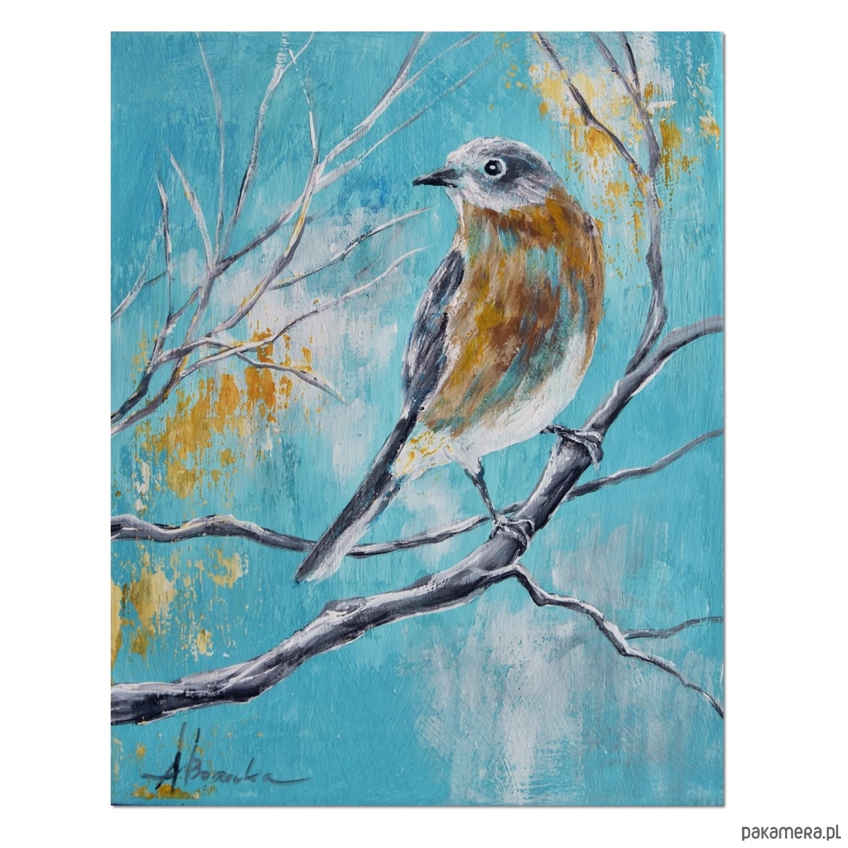 Obraz malowany w technice akrylowej na płótnie naciągniętym na blejtram (drewnianą ramę) o grubości ok. 1,5 cm. Rozmiar - 24/30 cm. Obraz pokryty jest werniksem dla ochrony przed wilgocią. Sygnowany.
