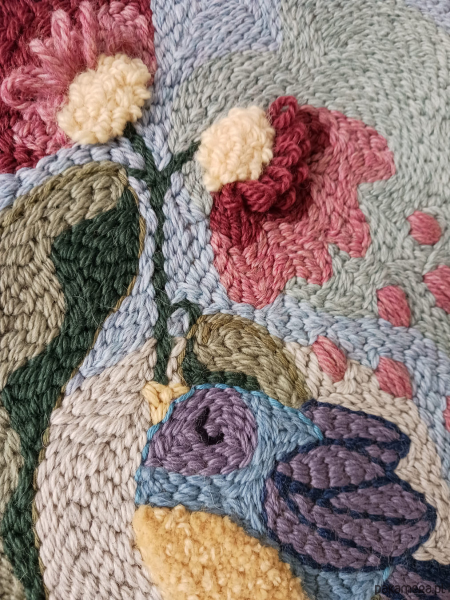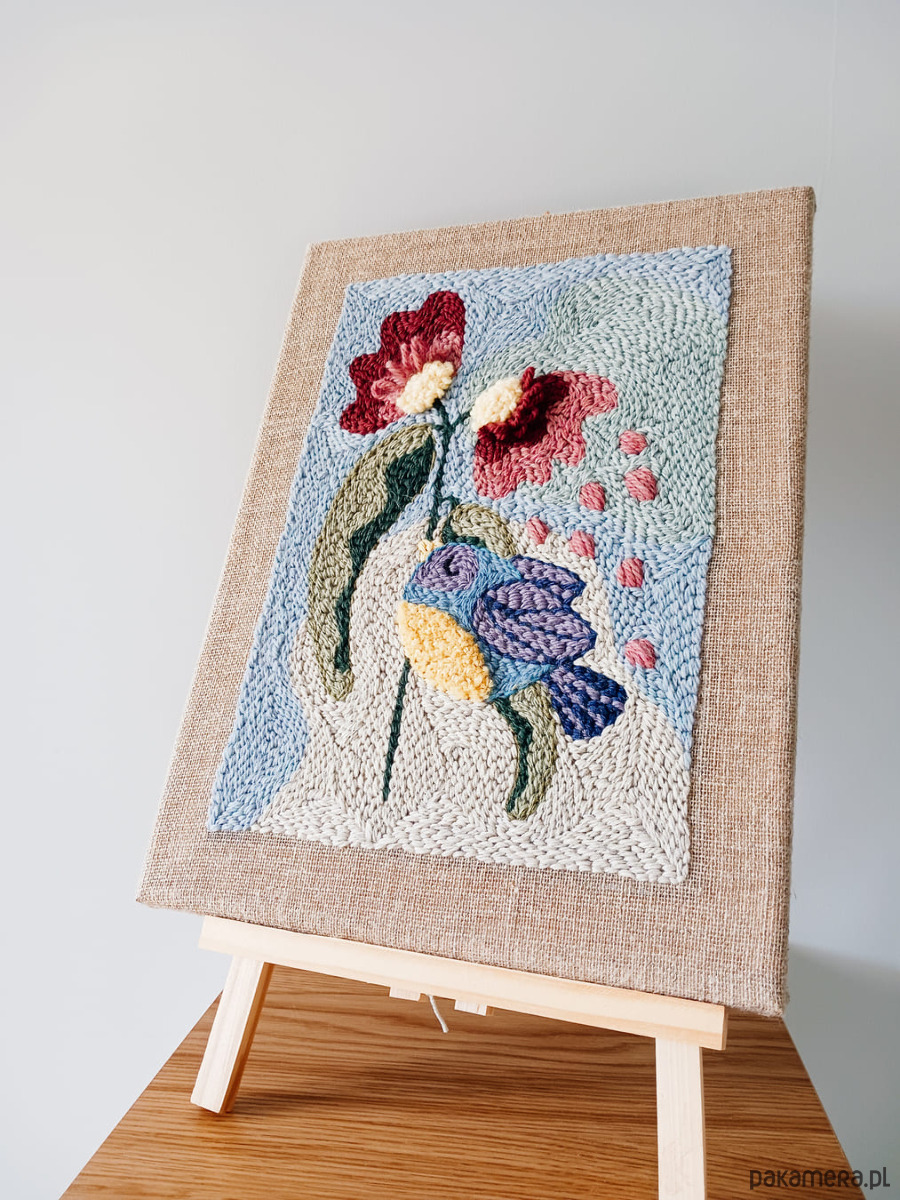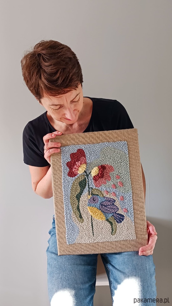 Użyłam wysokiej jakości wełnianej włóczki. Haftowałam na lnianej kanwie, która została naciągnięta na drewnianą ramę. Obrazek doda ciepła i charakteru każdemu wnętrzu. To nie tylko dekoracja ściany, ale również wyraz Twojego dobrego smaku i miłości do unikalnych, rzemieślniczych przedmiotów.