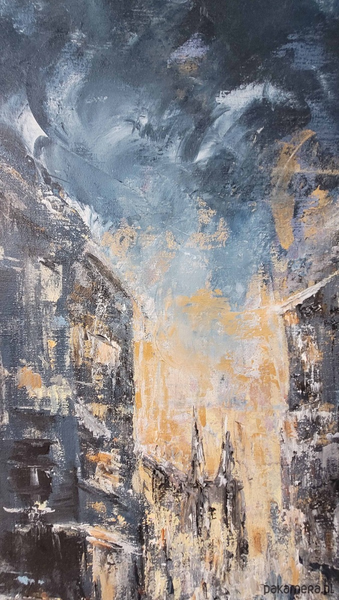 Obraz akrylowy ręcznie malowany farbami akrylowymi na bawełnianym płótnie.