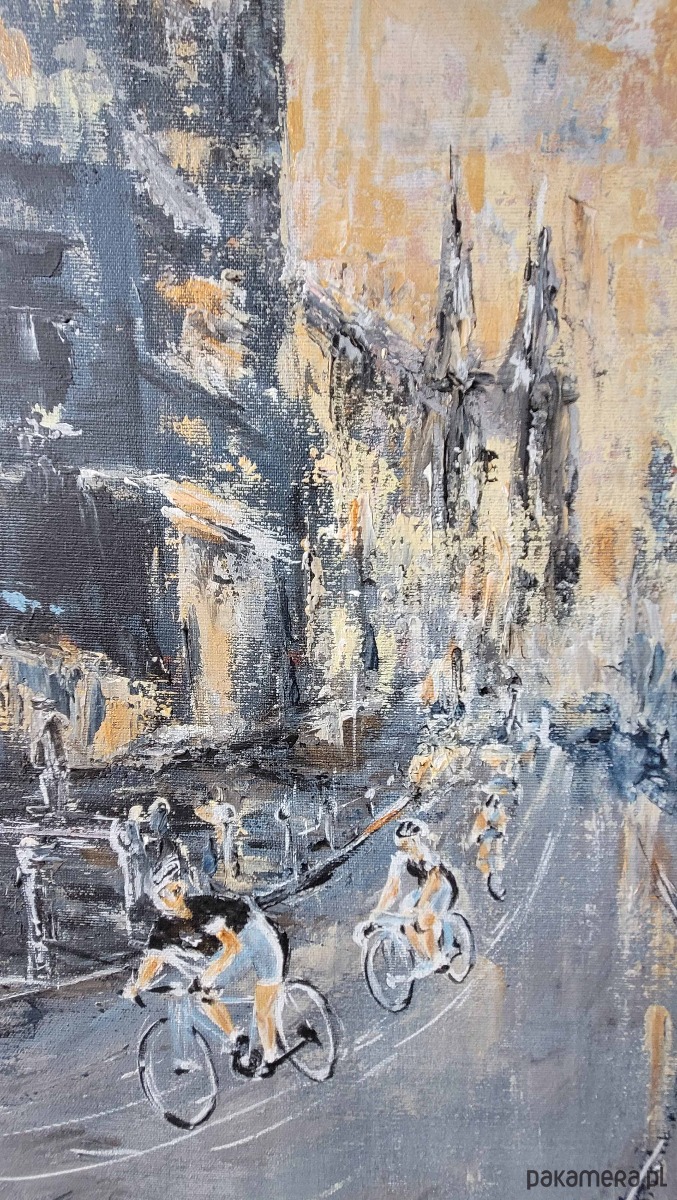 Obraz ręcznie malowany 60x80 Wrocław Miasto rowery