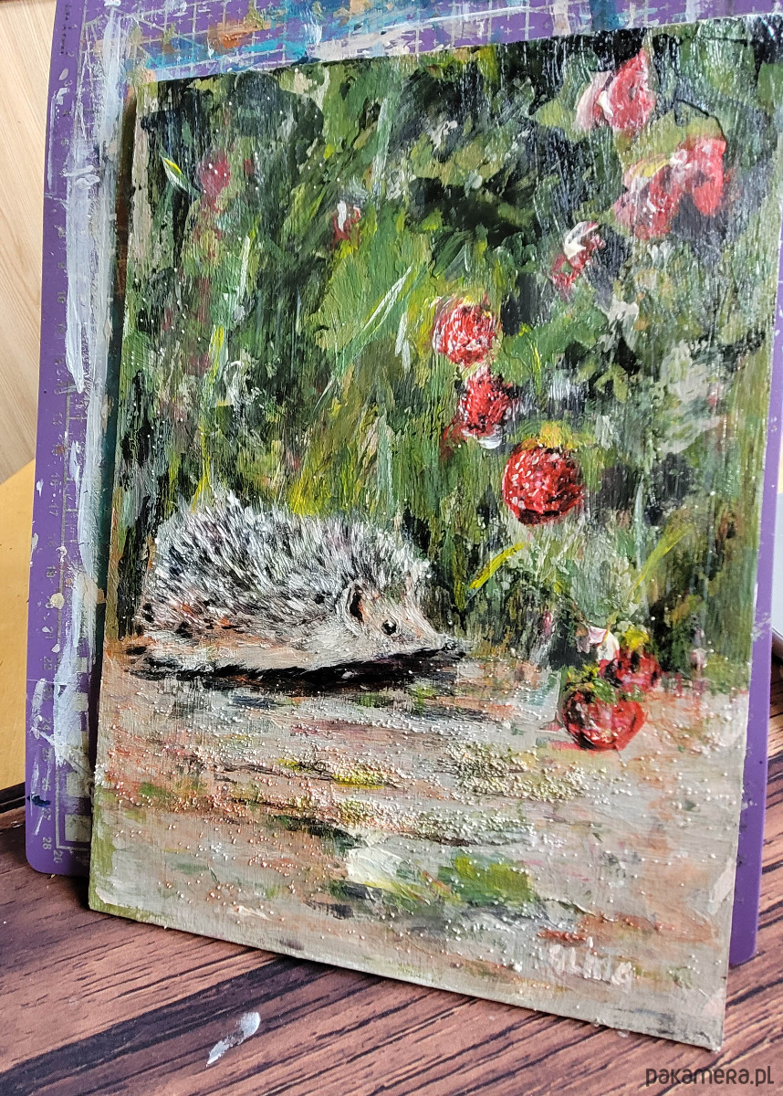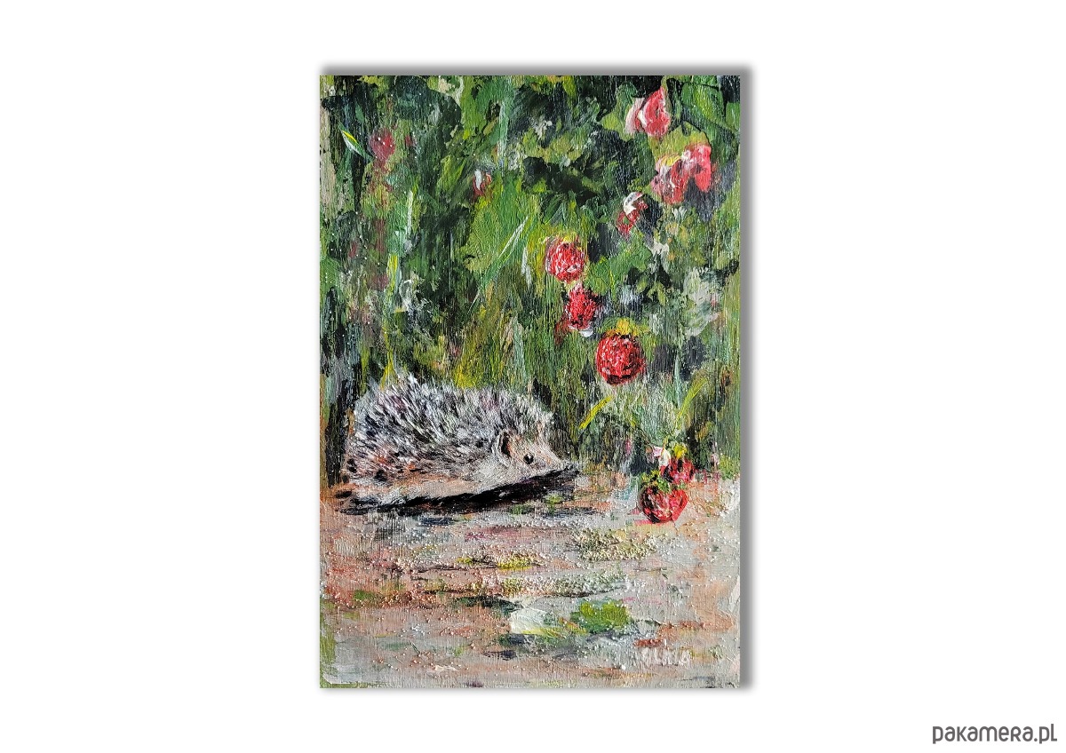 Obraz ręcznie malowany "'Jeż i truskawki"