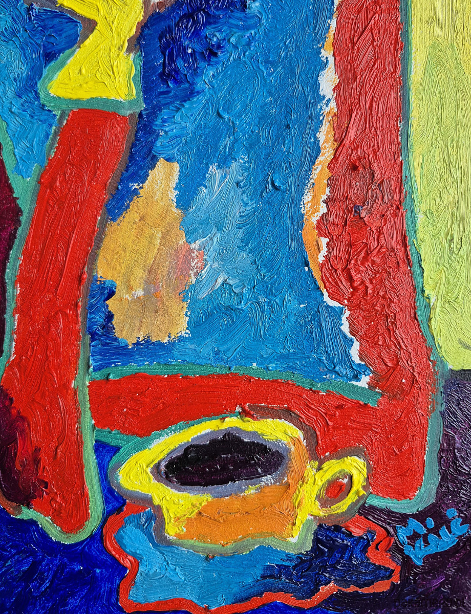 Obraz ręcznie malowany kolorowy obraz kawa i cisza