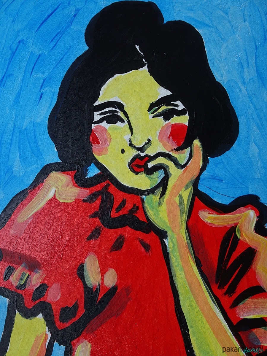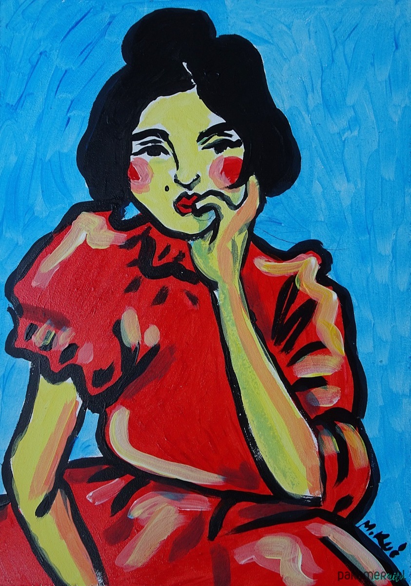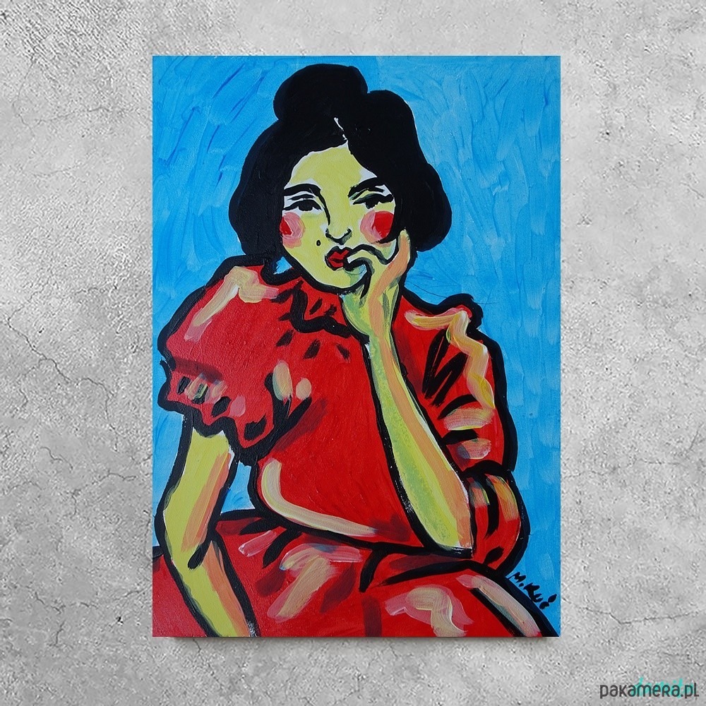 Obraz ręcznie malowany kolorowy obraz portret kobiety hiszpanka
