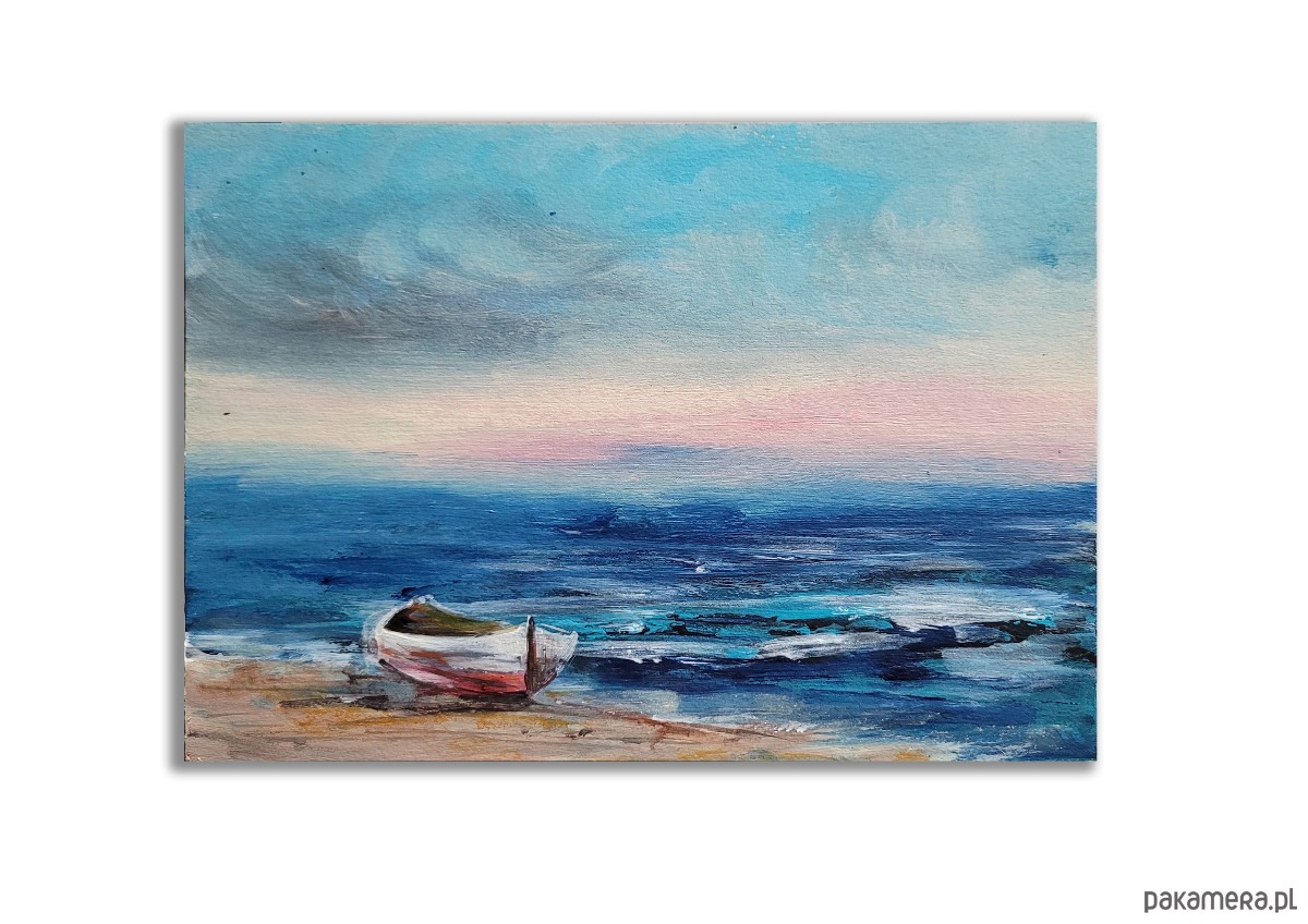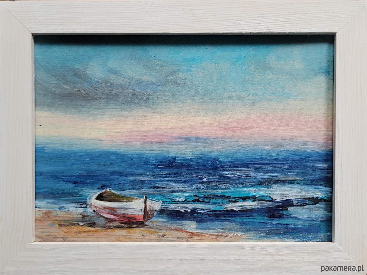 Obraz ręcznie malowany "Morze" łódka+ rama