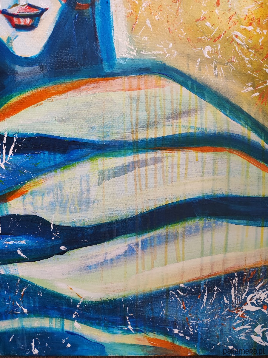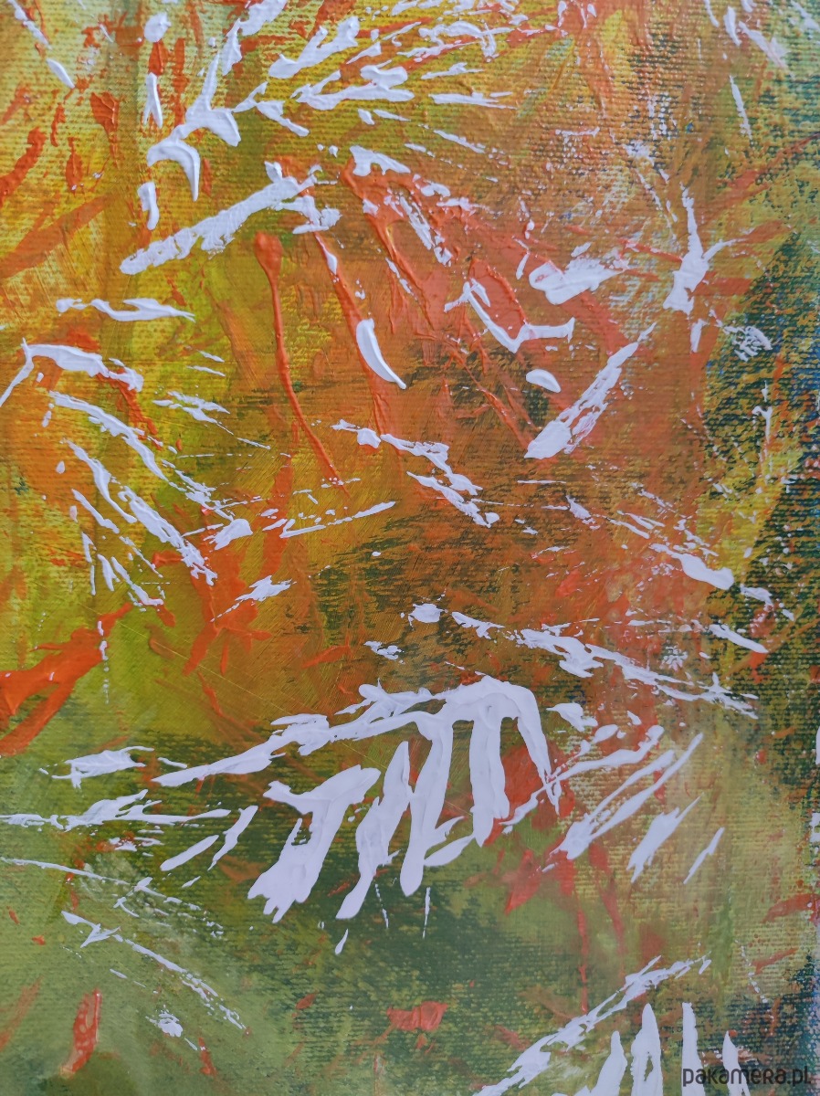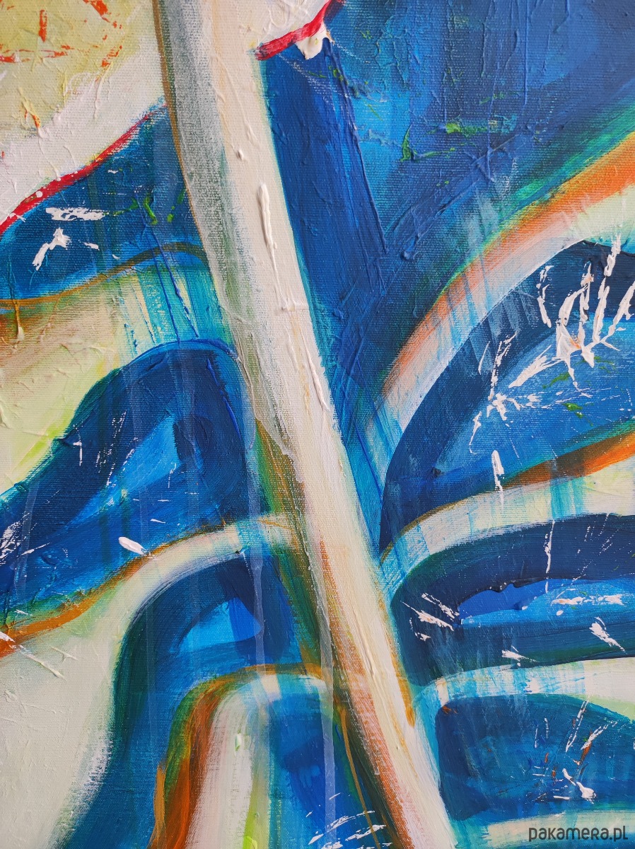 Autorski obraz malowany farbami akrylowymi na płótnie, pozwalający przenieść się do abstrakcyjnej, delikatnej rzeczywistości, tak zgoła innej dla każdego z nas.