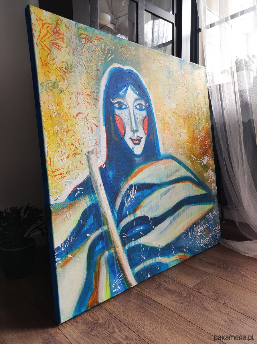 Obraz jest zabezpieczony werniksem, nadaje się od razu do powieszenia na ścianie.