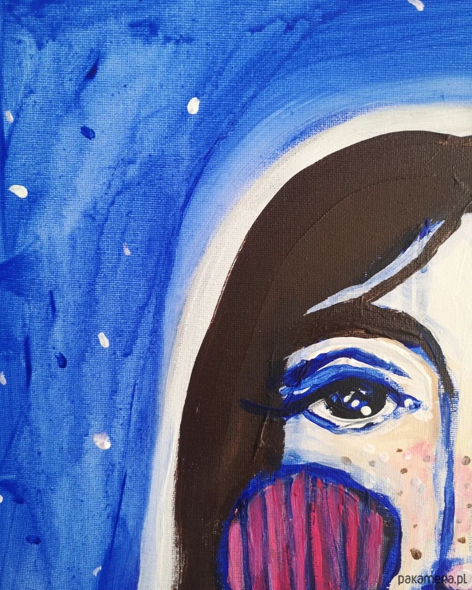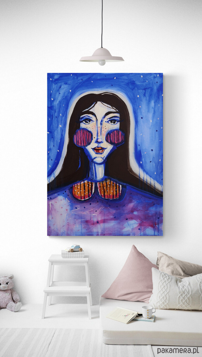 Obraz ręcznie malowany na płótnie 70x50 cm - Pani zagubiona w kosmosie