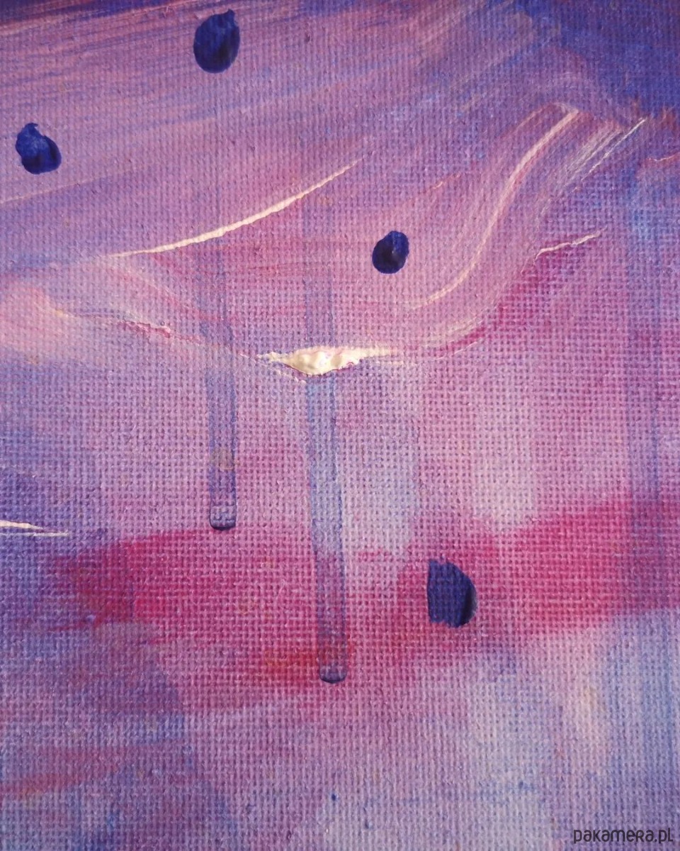 Autorski obraz malowany farbami akrylowymi na płótnie, pozwalający przenieść się do abstrakcyjnej, delikatnej rzeczywistości, tak zgoła innej dla każdego z nas.