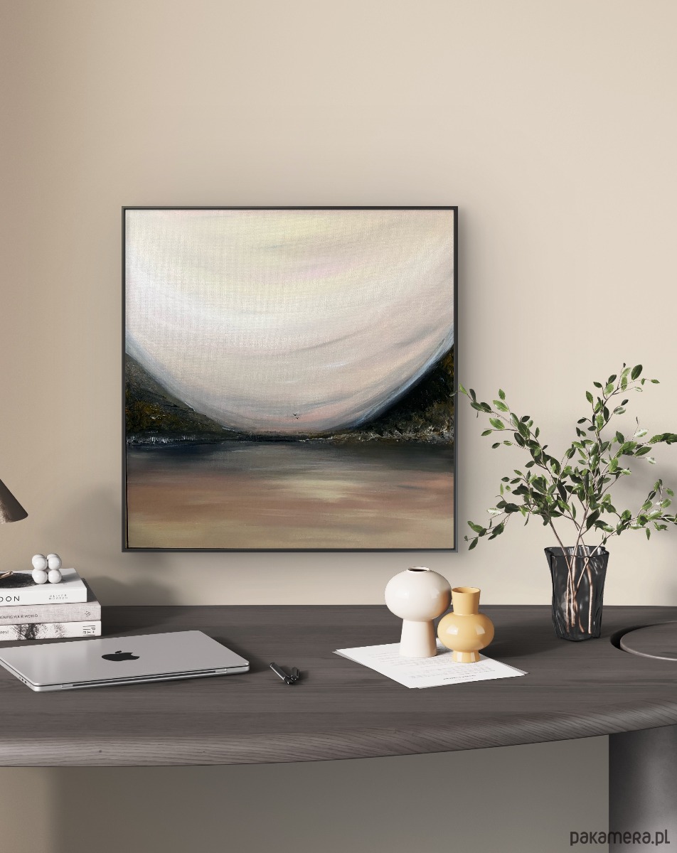 Autorski obraz z serii Tonacja: pt. „Tonacja II- cisza, kolekcji inspirowanej ciszą, równowagą i subtelnym dialogiem koloru z przestrzenią. Stonowana paleta barw oraz miękkie przejścia tonalne sprawiają, że praca doskonale wpisuje się w nowoczesne, minimalistyczne i skandynawskie wnętrza.