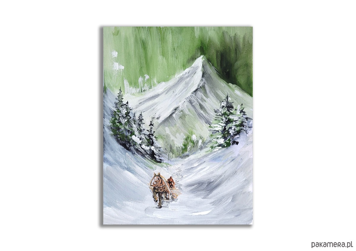 Obraz ręcznie malowany "Zima w górach"