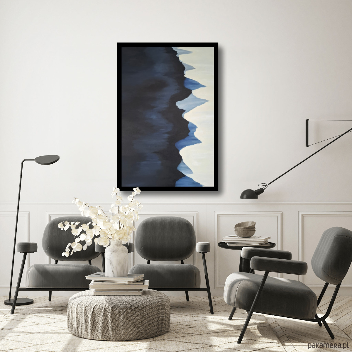 To obraz, który nie dominuje wnętrza, lecz je ucisza i równoważy.