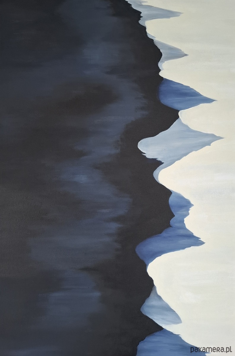 Islandia siedzi we mnie tak mocno, że postanowiłam namalować serię abstrakcji inspirowanych jej krajobrazami i ich różnorodnością. Jedne ciche i spokojne, inne kolorowe i dramatyczne. To jeden z pięciu obrazów z tej serii.