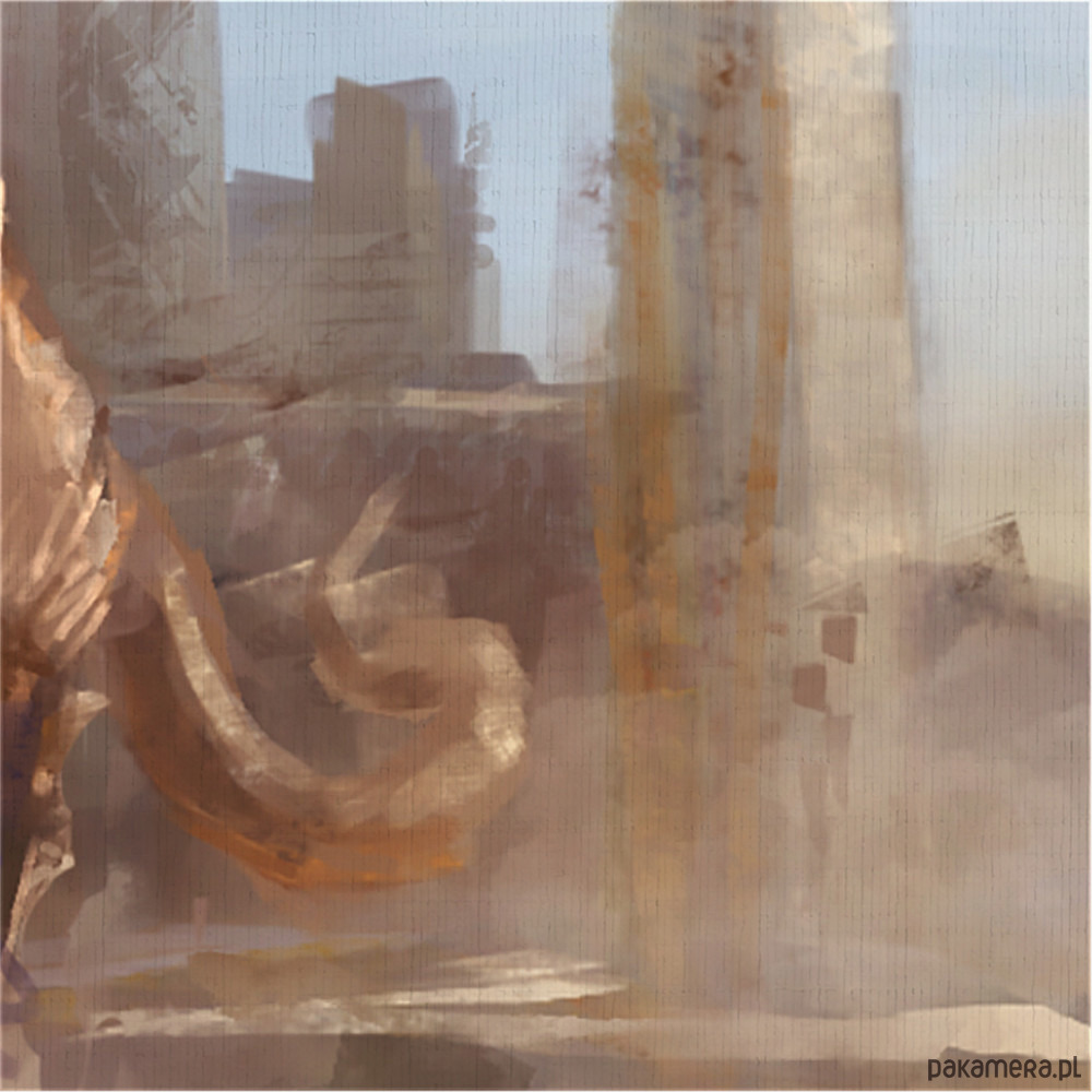 Obraz jest namalowany ręcznie techniką komputerową, a następnie wydrukowany na wysokiej jakości płótnie i naciągnięty na drewniany blejtram.