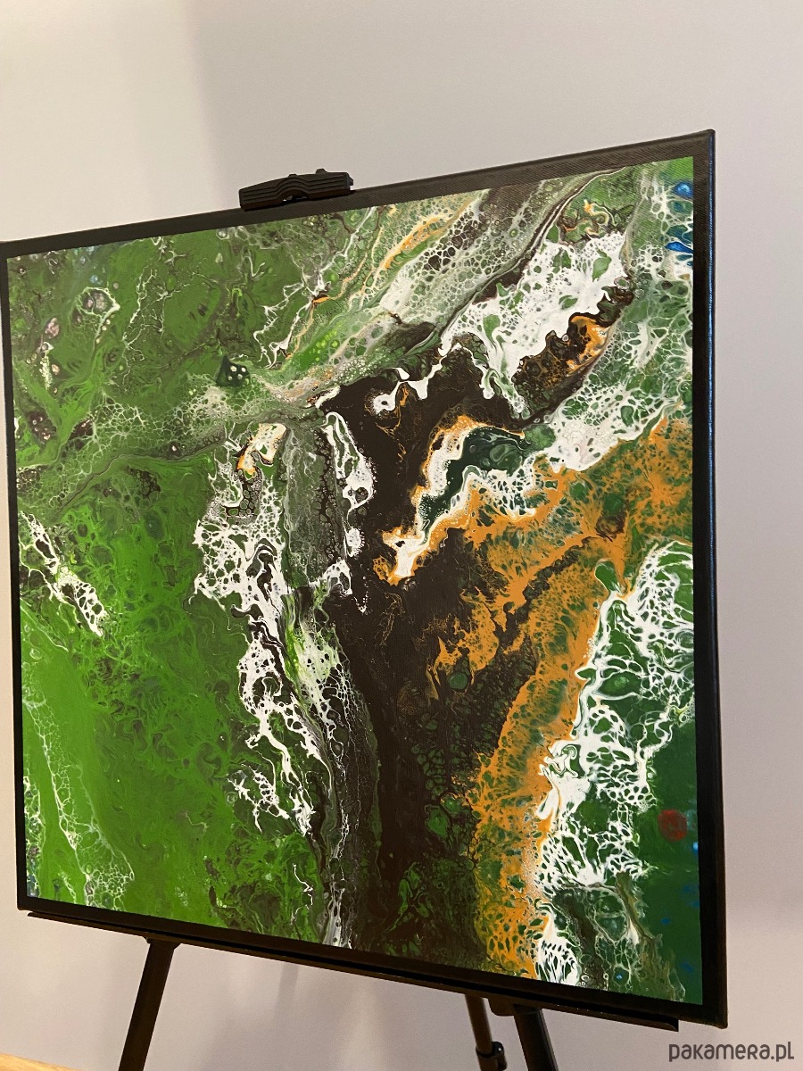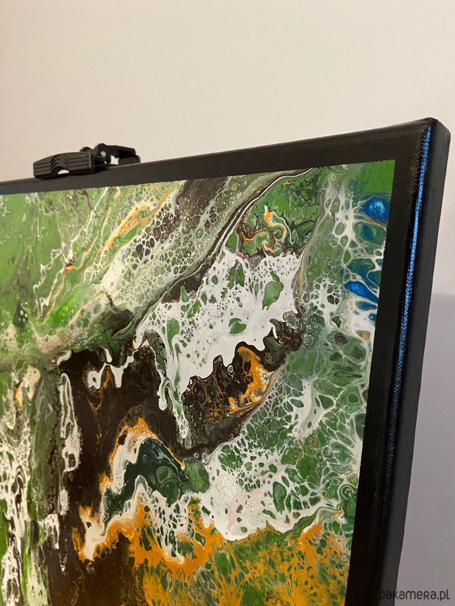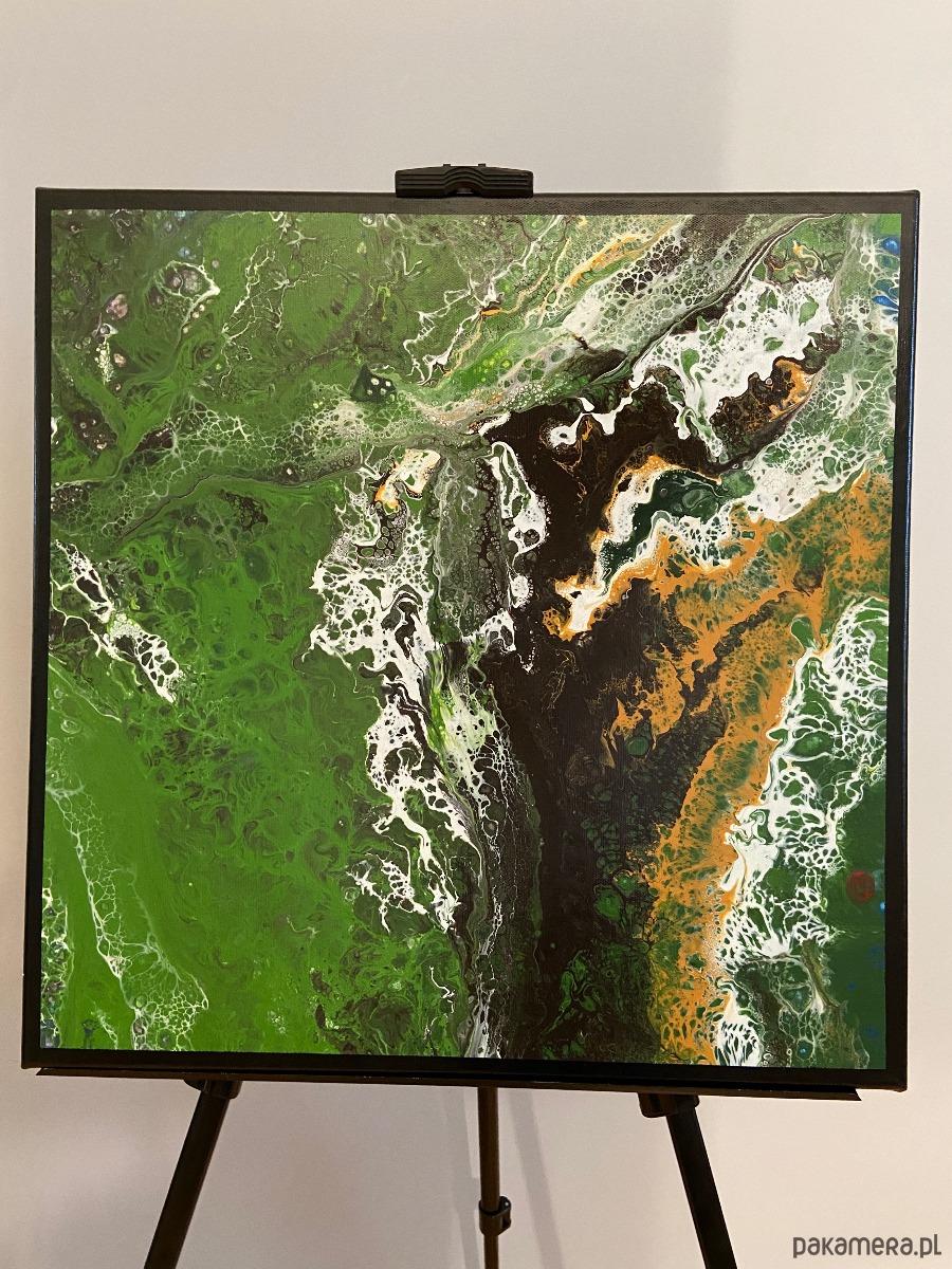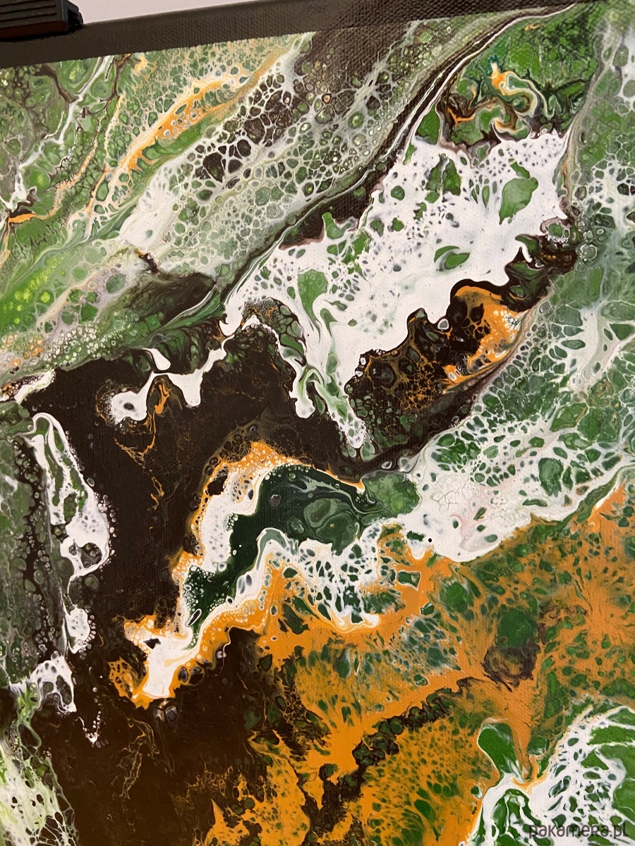 Obraz wykonany technika pouringu oraz własną. Każdy obraz tworzony tą techniką jest unikalny i jedyny w swoim rodzaju. Najwyższej jakości farby pozwalają na ukazanie prawdziwej potęgi gamy kolorystycznej wydobytej techniką pouringą w stylu rozlewających się komórek.