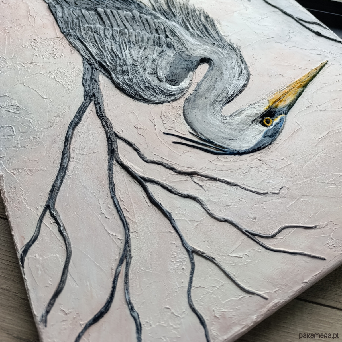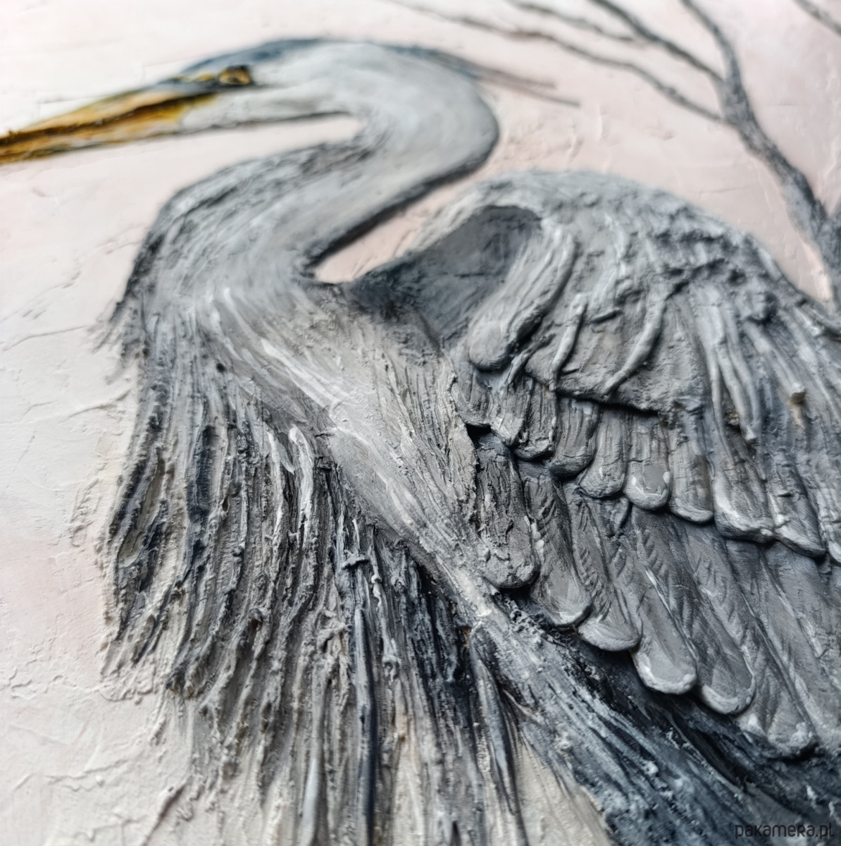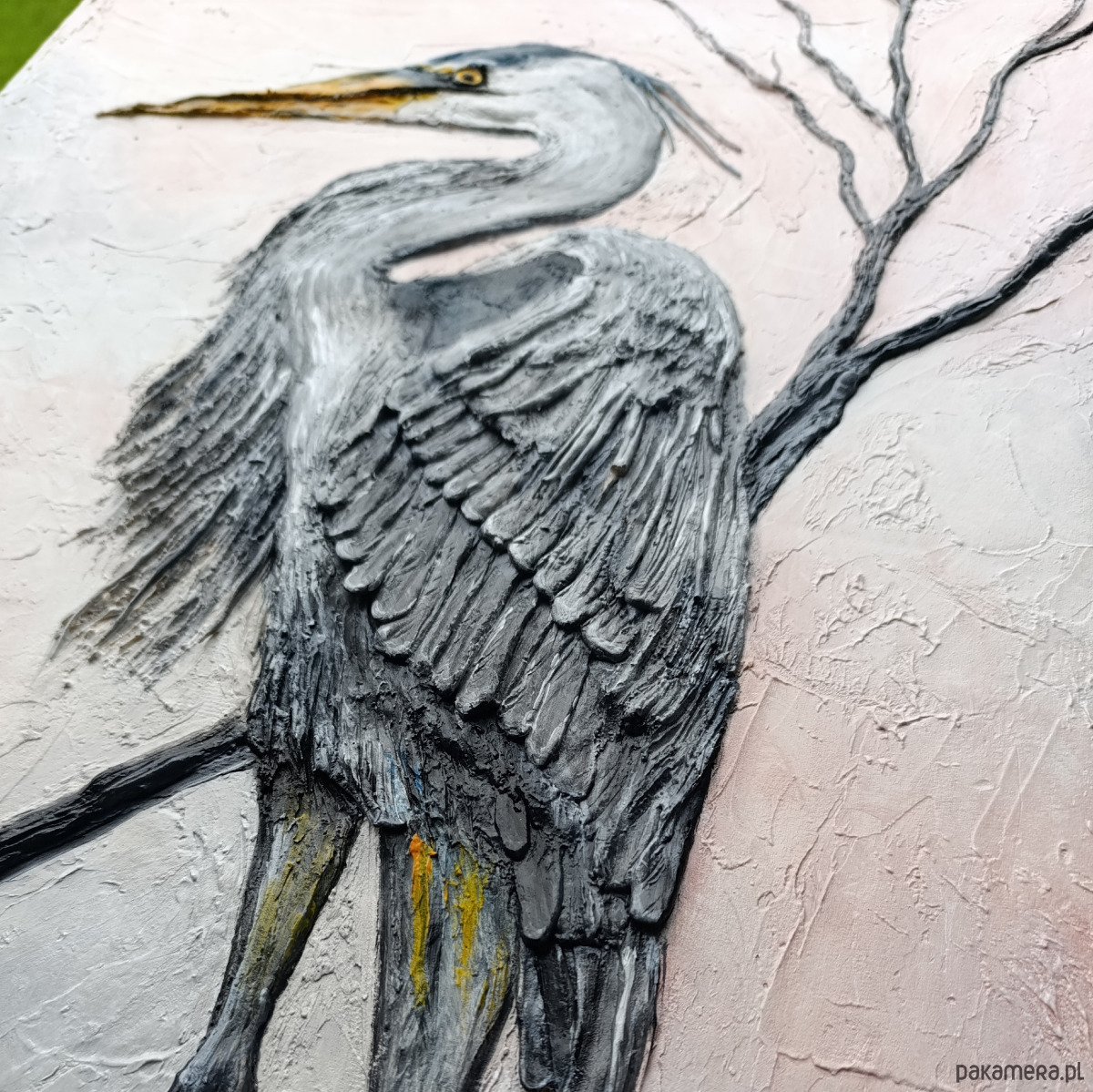 Obraz strukturalny Czapla siwa - płaskorzeźba na płótnie