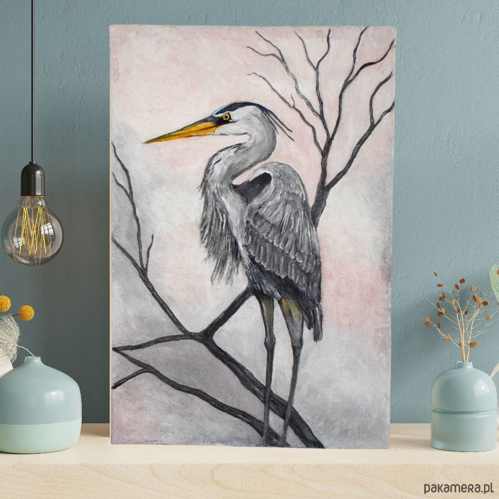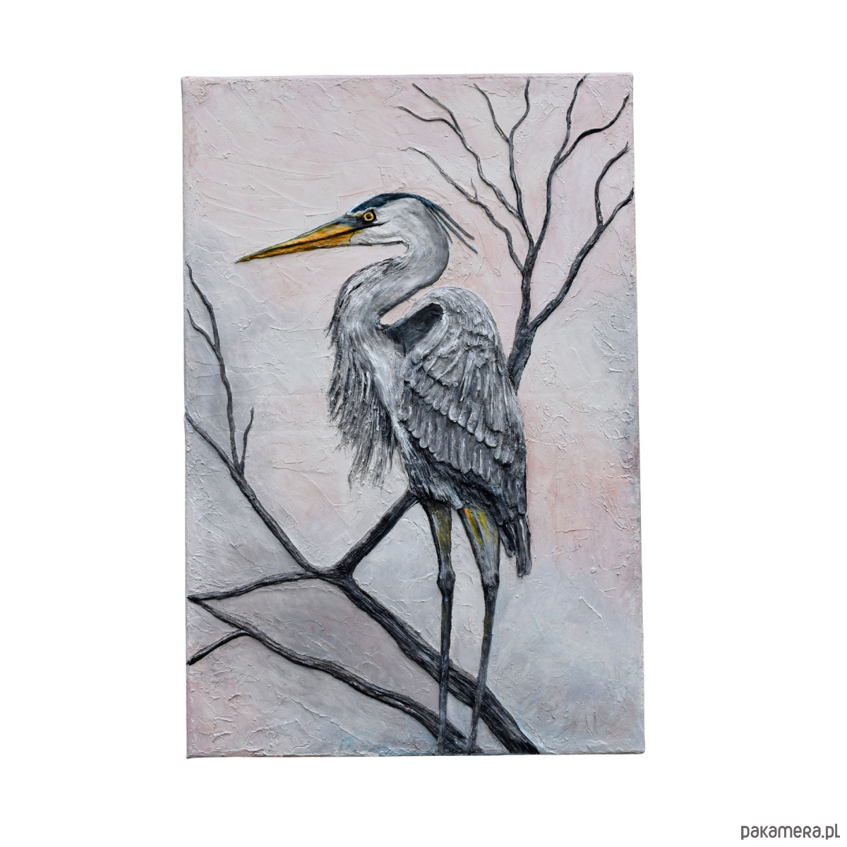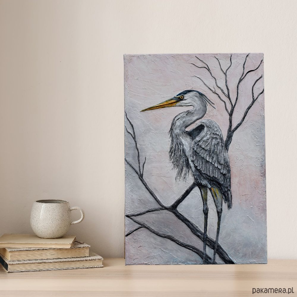 Obraz strukturalny Czapla siwa - płaskorzeźba na płótnie