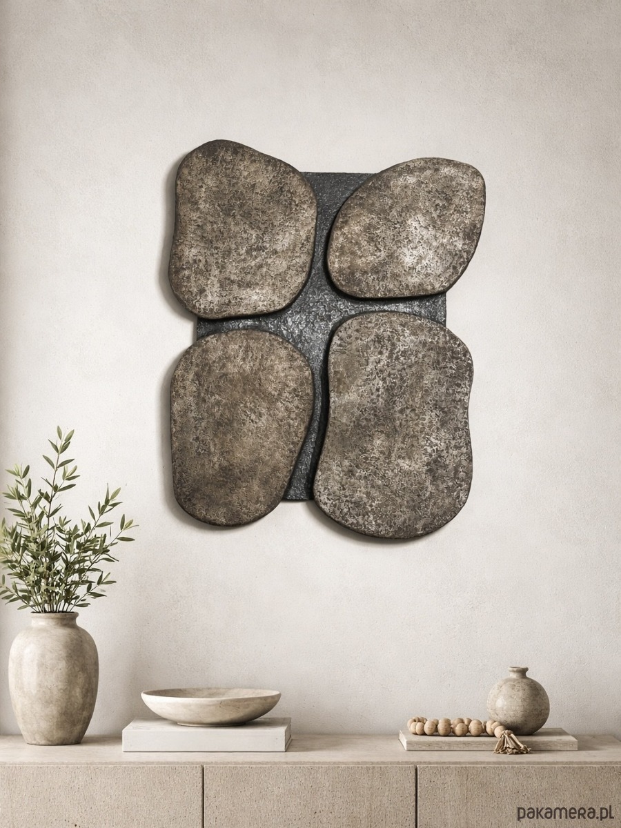 Cztery organiczne formy – podobne do wygładzonych kamieni – tworzą spokojny układ, w którym każda forma istnieje osobno, a jednocześnie pozostaje w dialogu z pozostałymi.