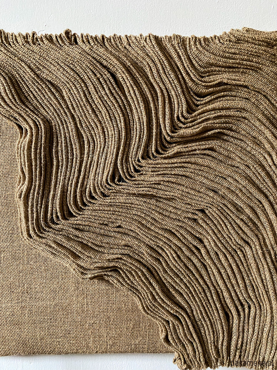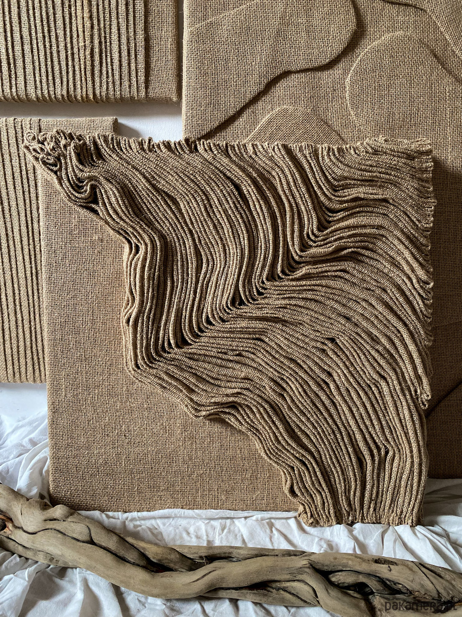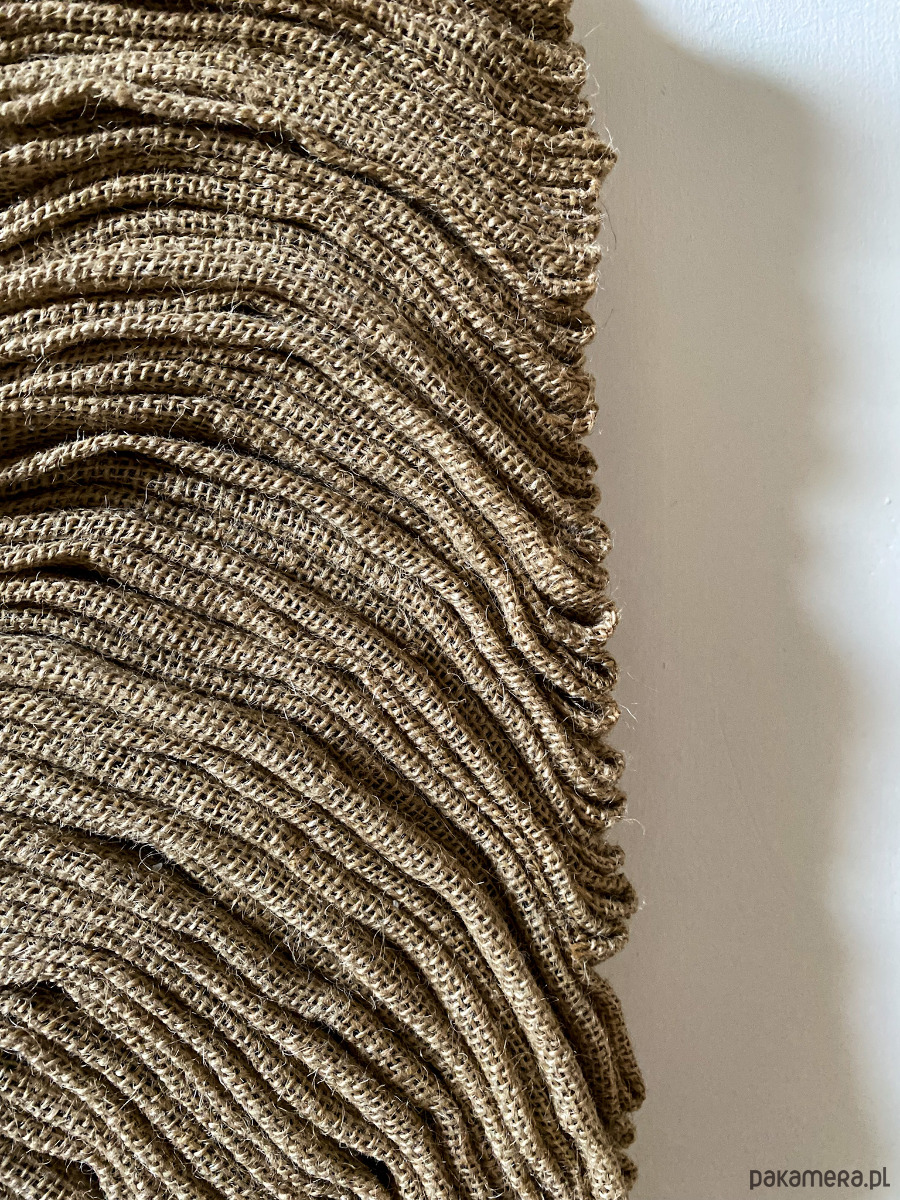 Minimalistyczny obraz strukturalny z tkaniny jutowej JUTE FLOW- doskonały dodatek do nowoczesnych aranżacji.