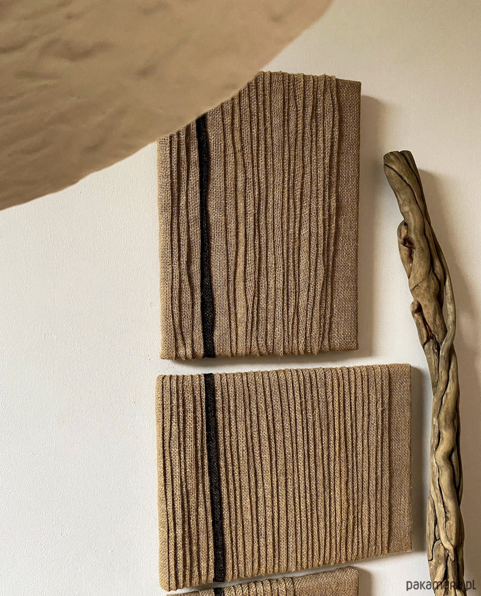 Minimalistyczny obraz strukturalny z tkaniny jutowej JUTE ROAD (zestaw 2 obrazów)-doskonały dodatek do nowoczesnych aranżacji.