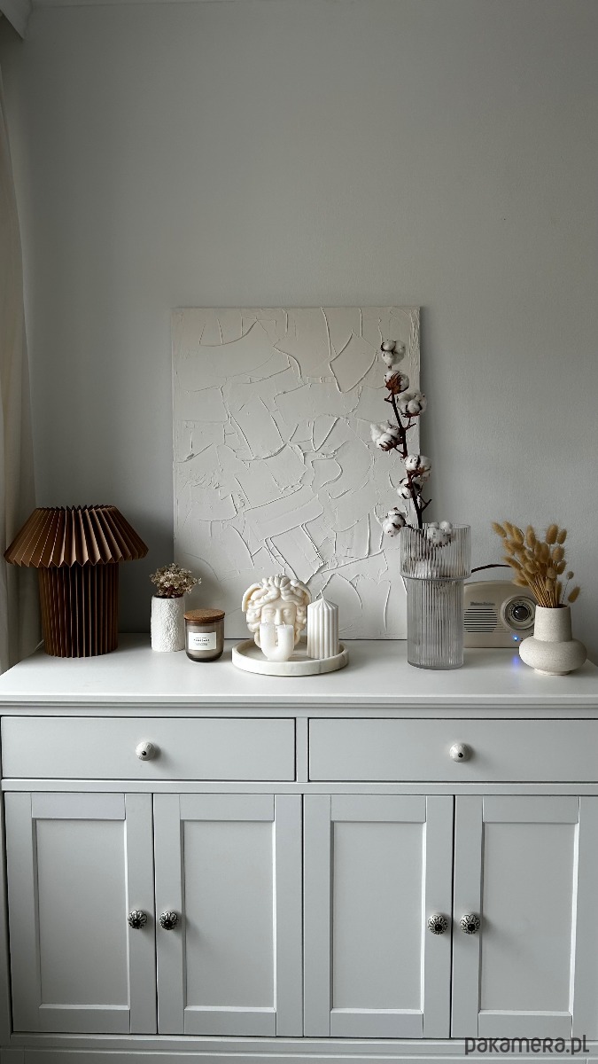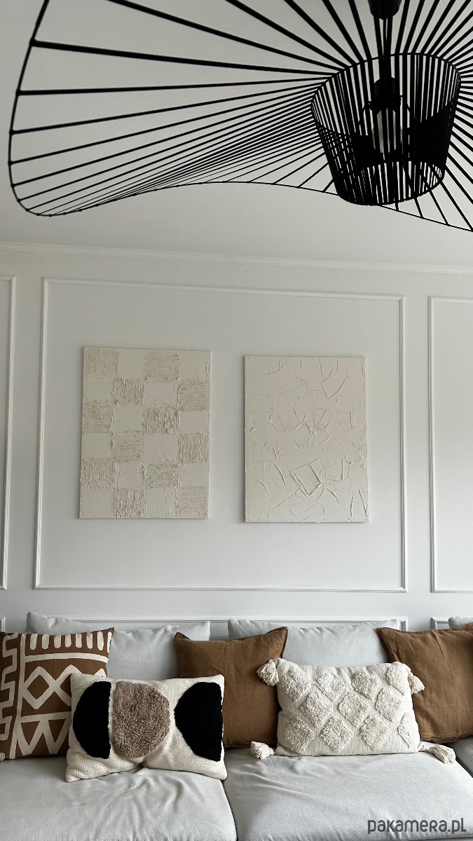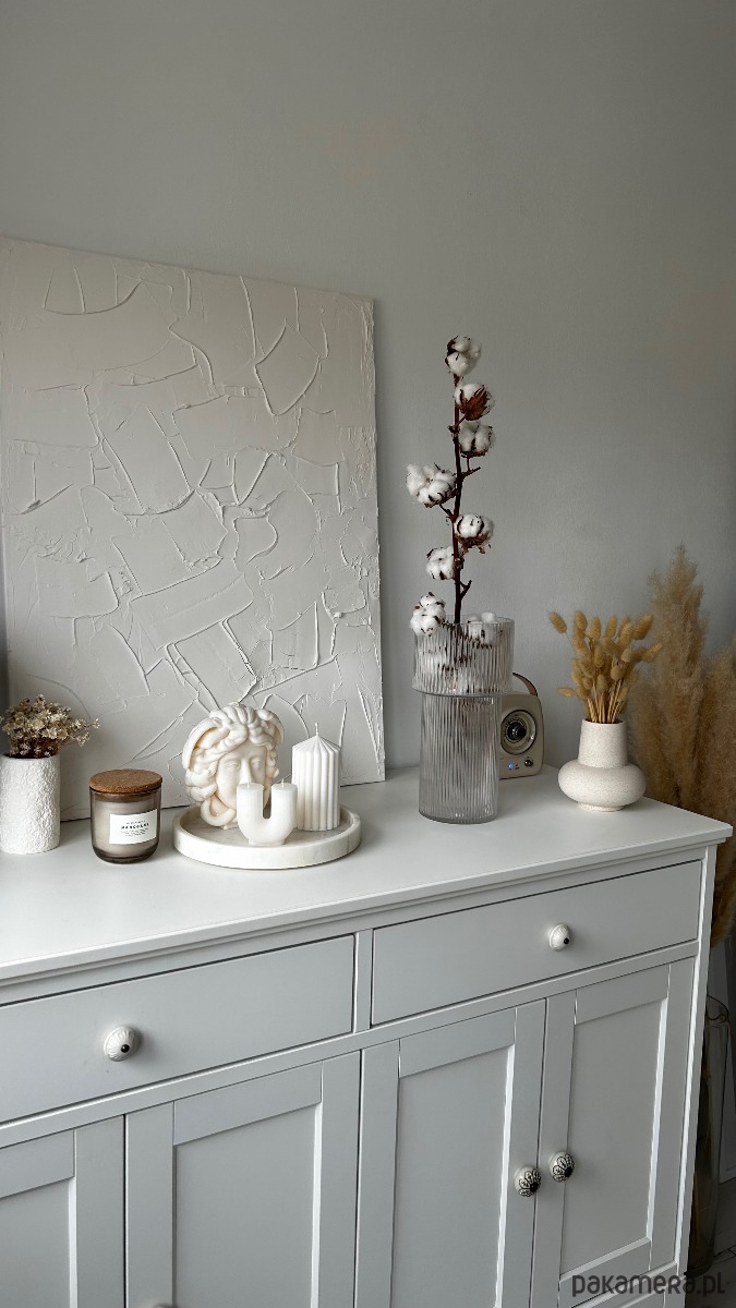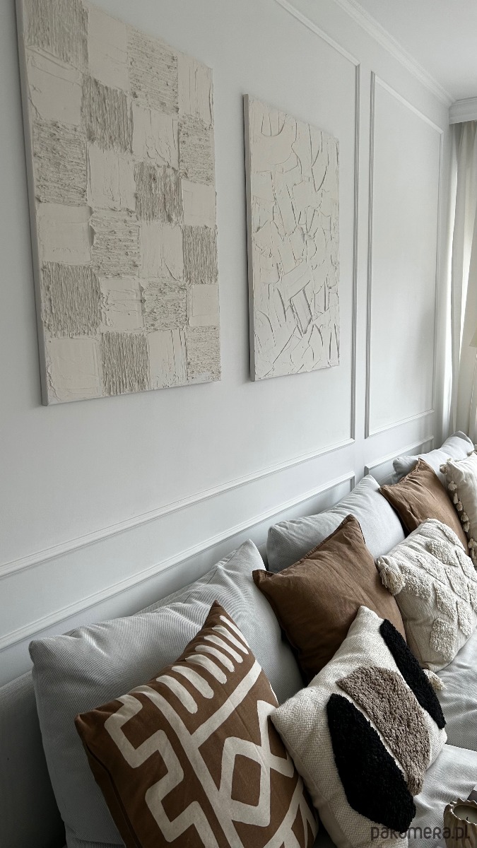 Struktura masy szpachlowej nadaje dziełu sztuki niepowtarzalny, ręcznie wykonany charakter, co czyni je nie tylko estetycznym, ale także unikatowym w każdym szczególe. To wyjątkowe połączenie białej masy szpachlowej z abstrakcyjną formą stanowi prawdziwe arcydzieło, które z pewnością wzbogaci przestrzeń i stanie się rozmownym elementem każdego wnętrza.