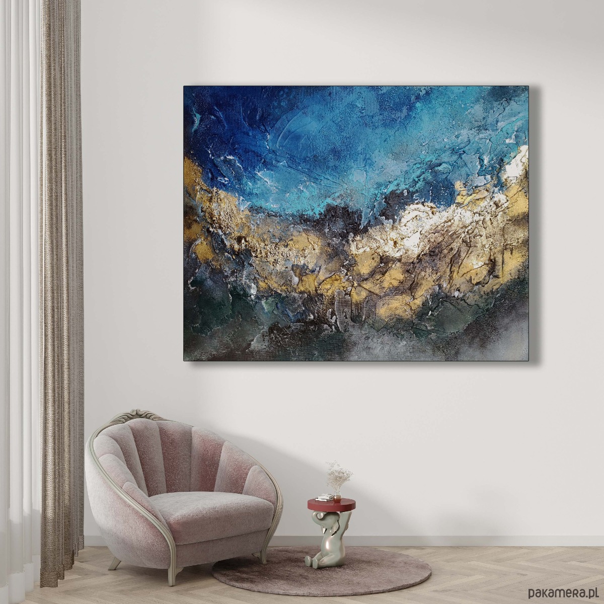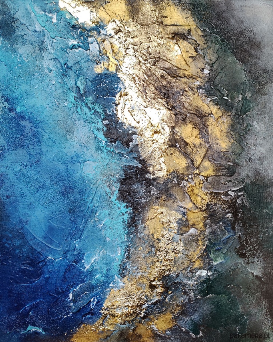 Ręcznie malowany obraz wykonany farbami akrylowymi. Solidne podobrazie - wysokiej jakości bawełniane włoskie płótno. Boki podobrazia zamalowane, stanowią kontynuację obrazu. Nie wymaga oprawiania w ramę.