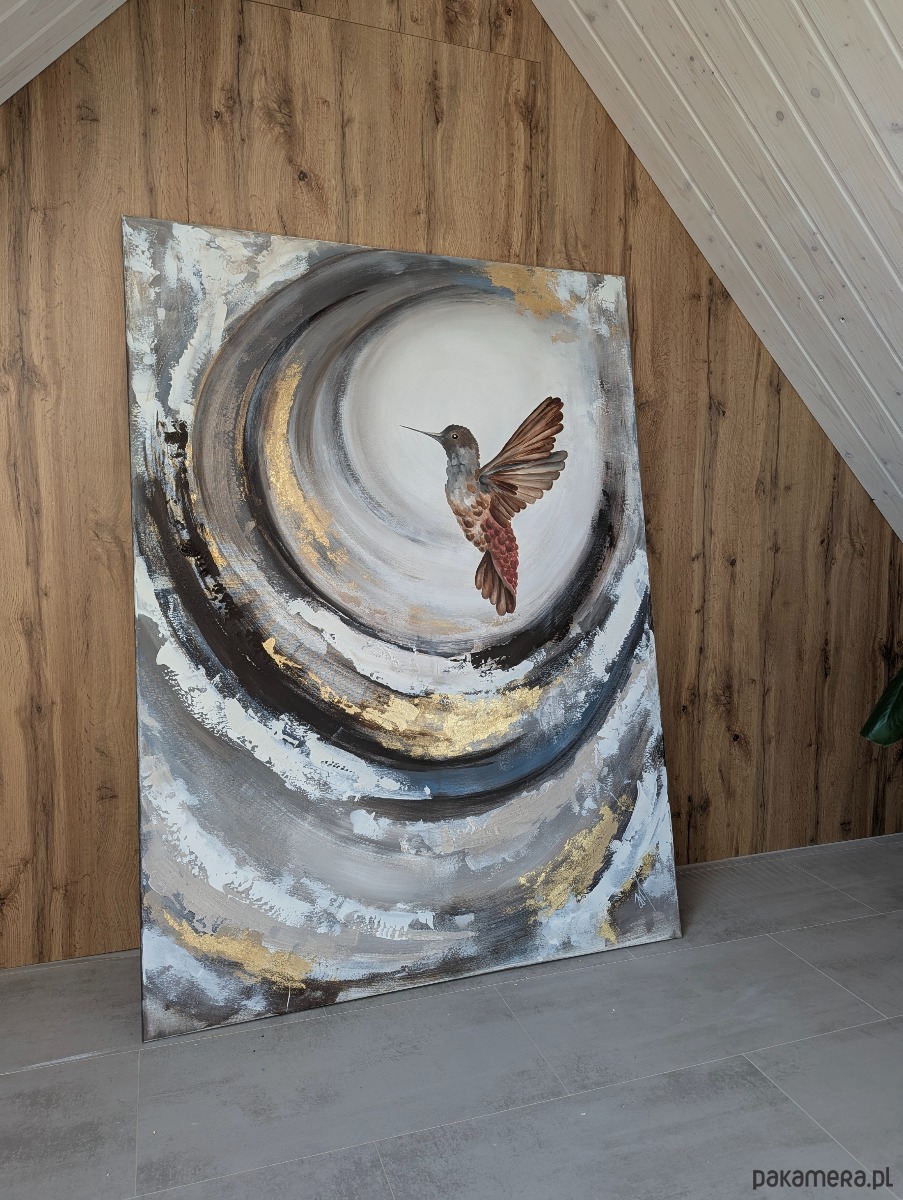 Ręcznie malowany obraz, mix media: akryl, olej, pasty strukturalne, złocenie szlagmetalem. Solidne podobrazie - wysokiej jakości bawełniane włoskie płótno. Boki podobrazia zamalowane, stanowią kontynuację obrazu. Nie wymaga oprawiania w ramę. Obraz sprzedawany jest bez ramy dekoracyjnej, jeśli potrzebujesz ramę - napisz do mnie.