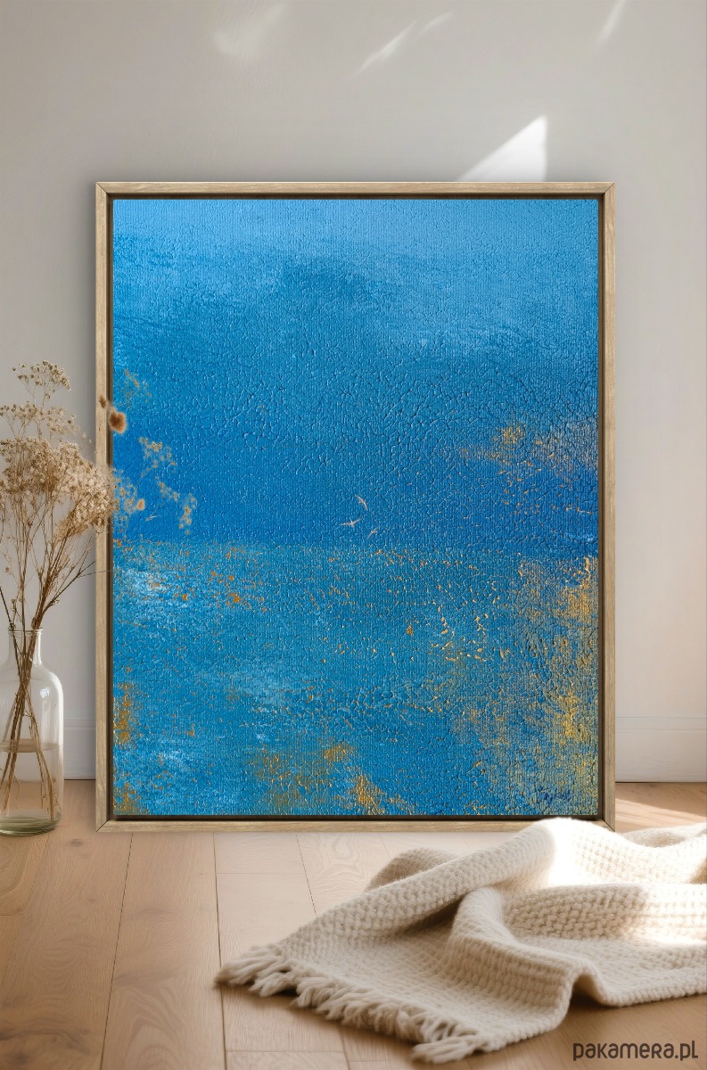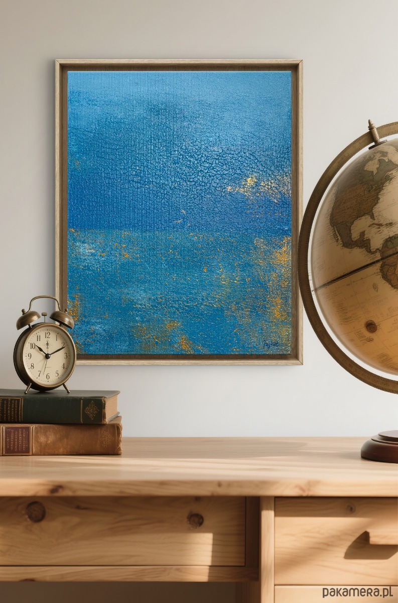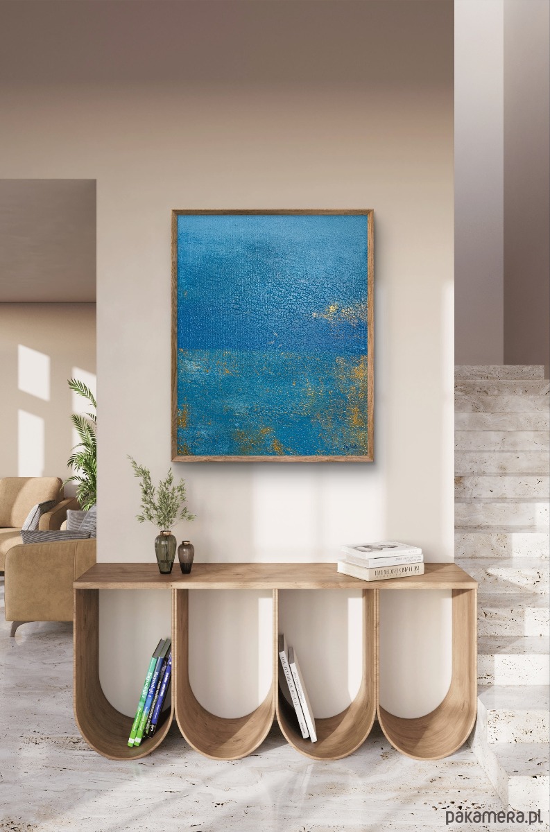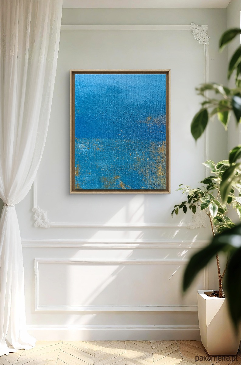 Abstrakcyjna interpretacja morskiego światła. To pejzaż emocjonalny — intymny, cichy, skupiony w sobie, jak moment, kiedy zatrzymujemy się na plaży i pozwalamy myślom opaść.
