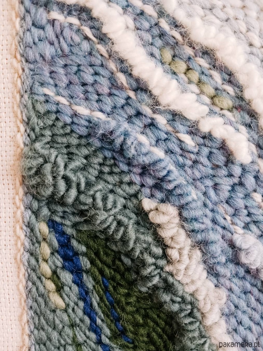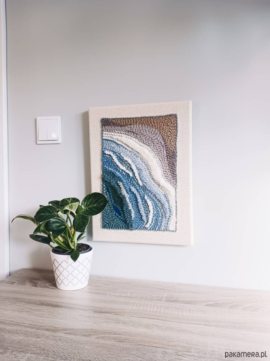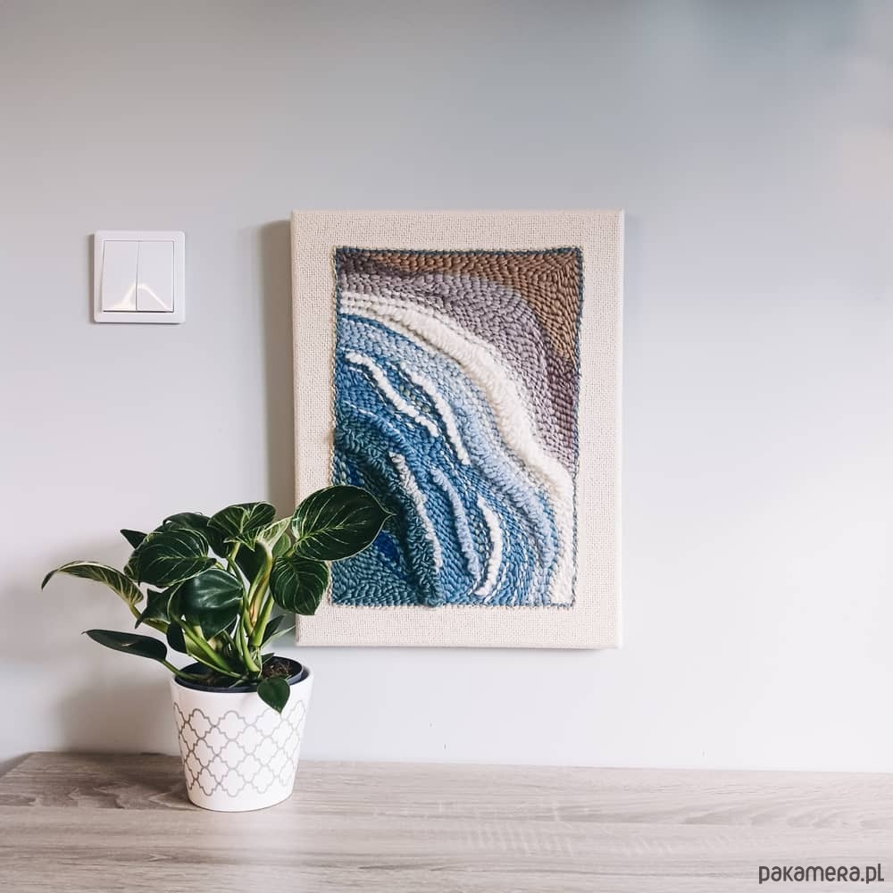 Obraz jest wykonany ręcznie w technice punch needle i jest dostępny od ręki. Każda następna kopia będzie nieco się różnić, każda sztuka jest jedyna w swoim rodzaju.