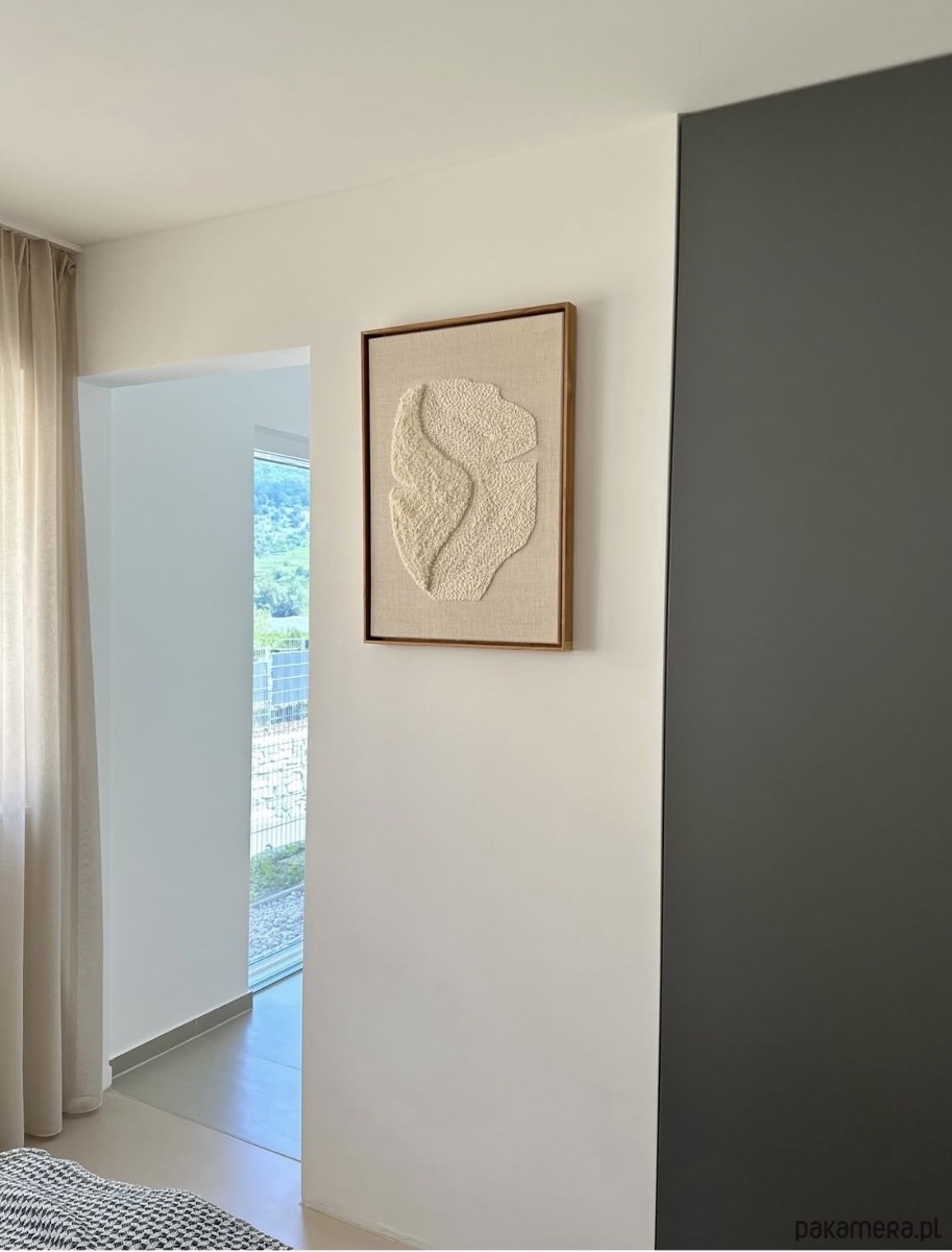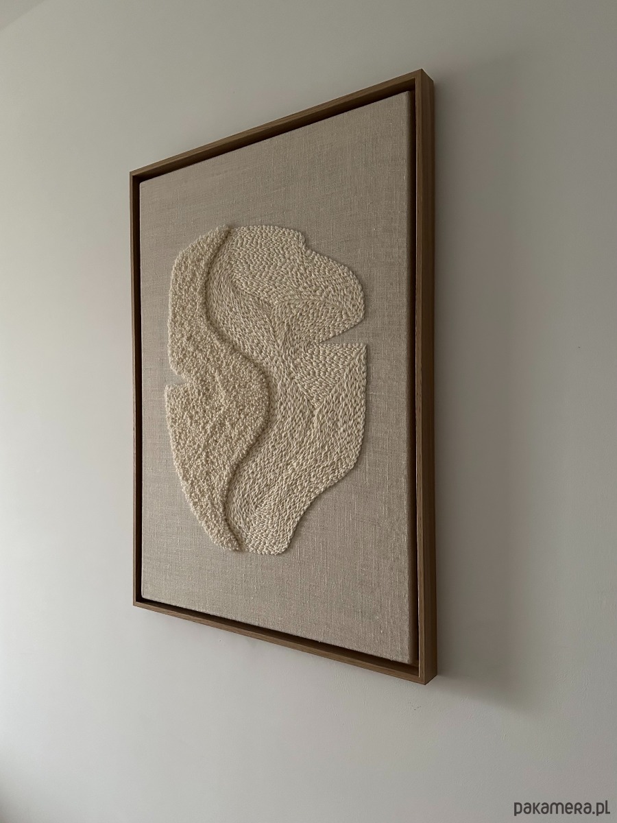 Obraz wykonany technika punch needle naturalną owczą wełną z podhalańskich owiec na lnianym maturalnym płótnie w kolorze ecre, oprawiony w drewnianą ramę o wymiarach 52cmx72cm / 2026.