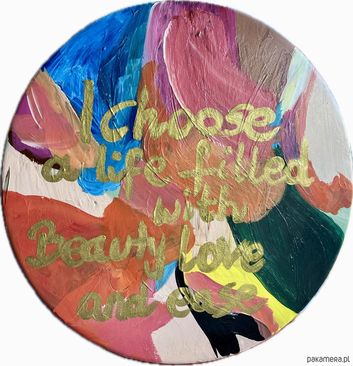 Wielobarwny obraz z pozytywnym przekazem, który będzie nastrajał na cały dzień i przypominał na czym warto skupiać swoją uwagę :)