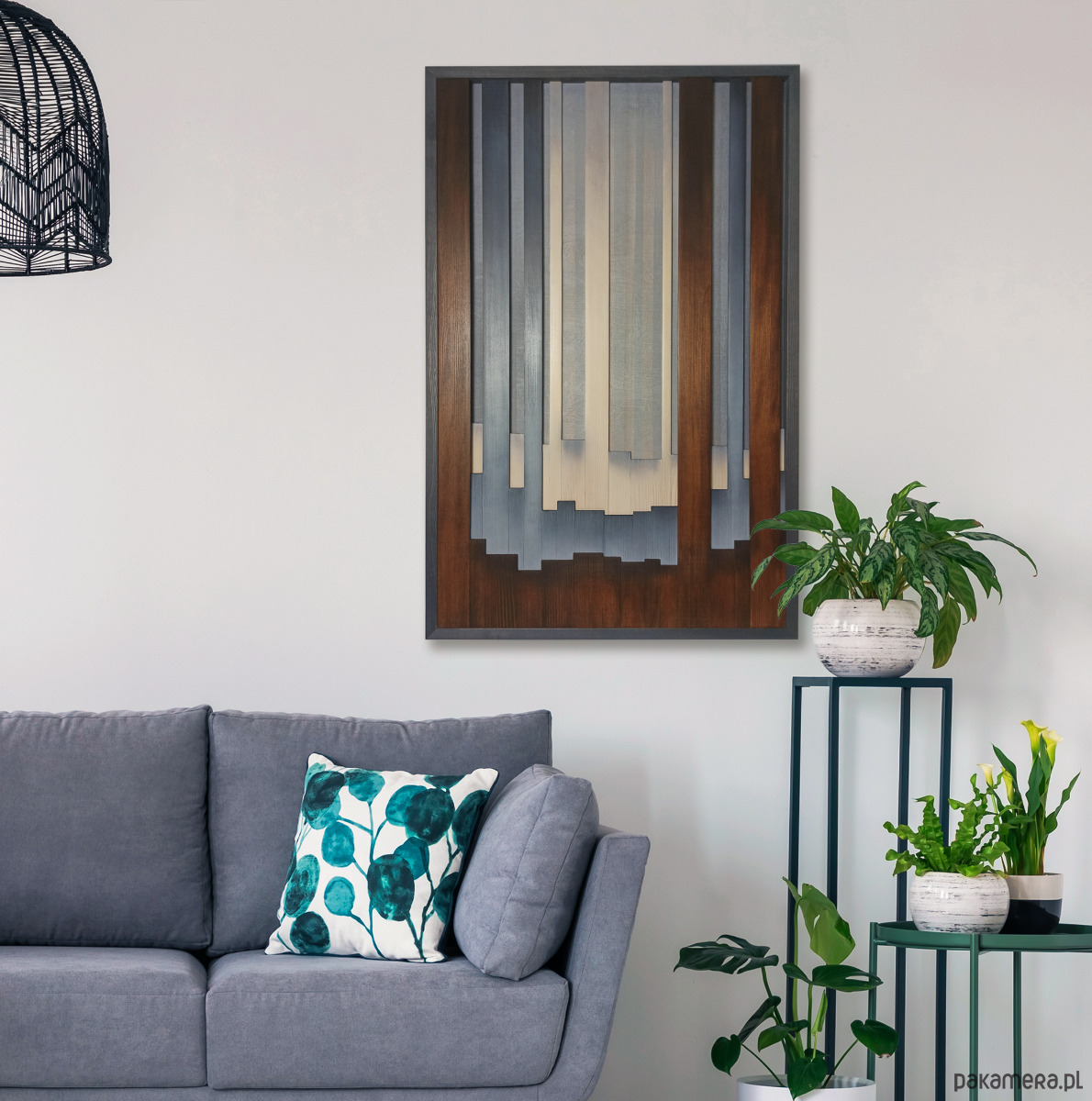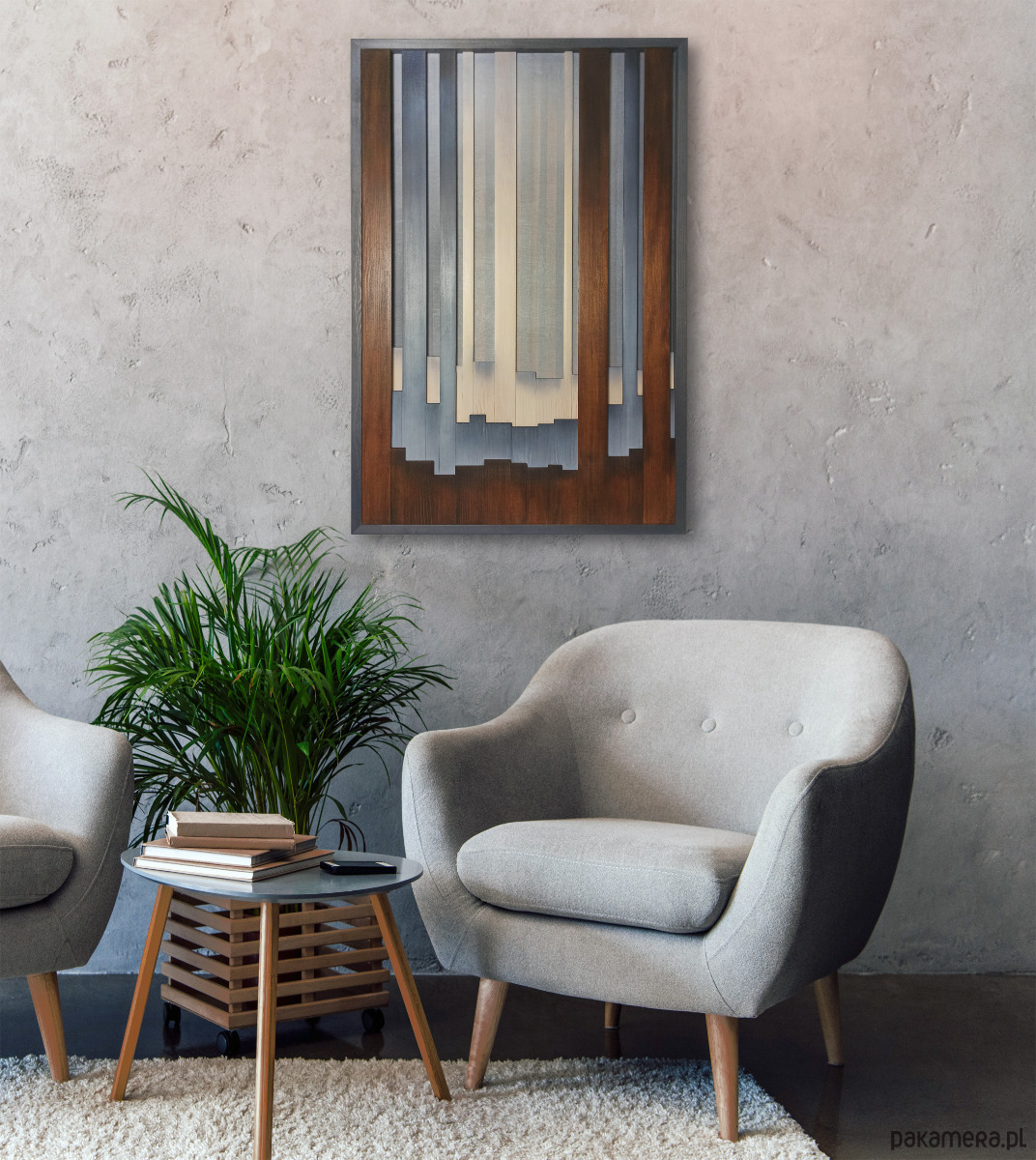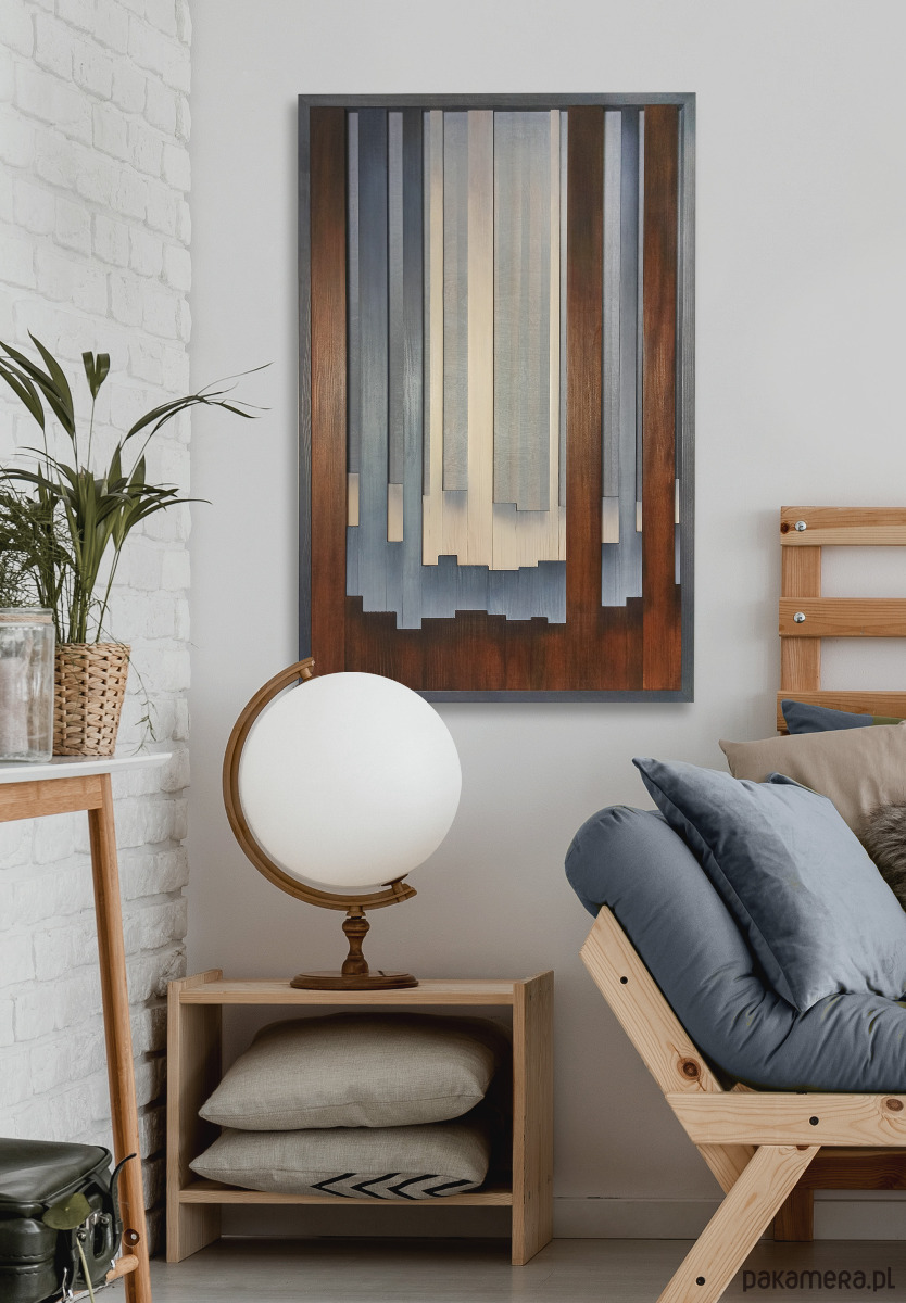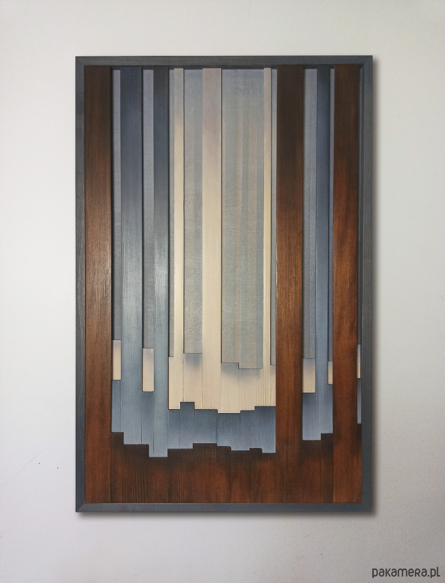 W świecie przykrytym śniegiem każdy dźwięk staje się delikatniejszy, a czas zwalnia. „Zimowa Cisza” to ręcznie wykonany obraz z drewna, w którym warstwowa kompozycja i subtelne odcienie brązów, szarości oraz błękitów przenoszą wprost do spokojnego, zimowego lasu.