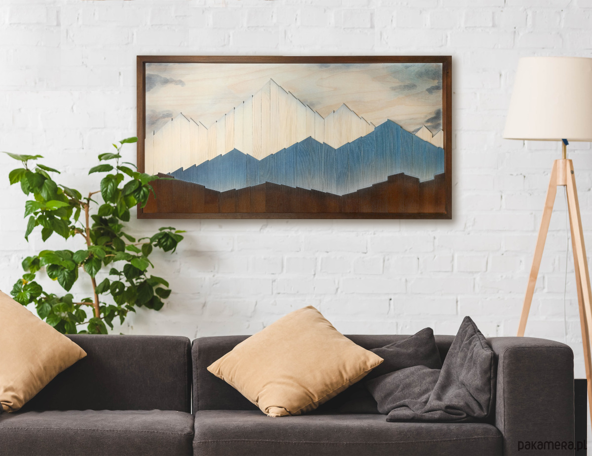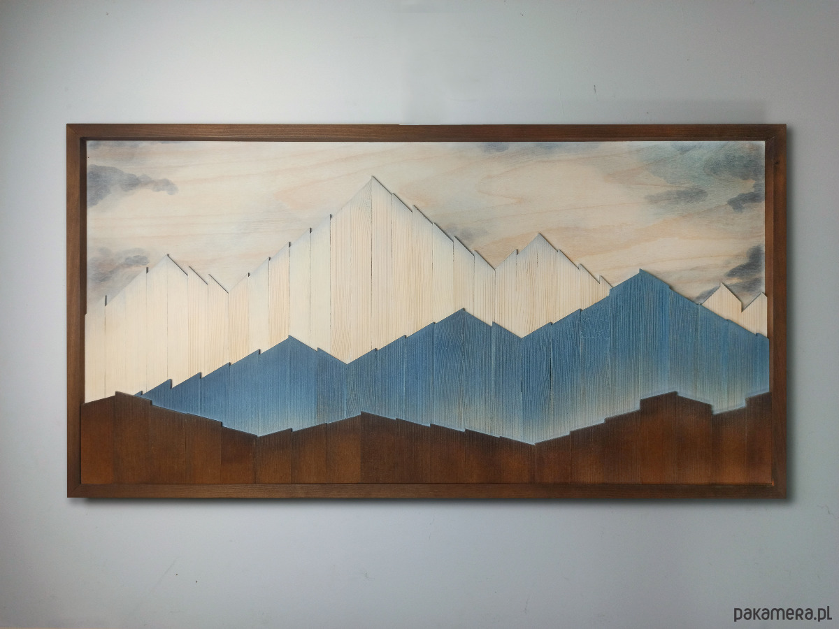 Obraz z drewna. Górski pejzaż. Drewniana dekoracja na ścianę