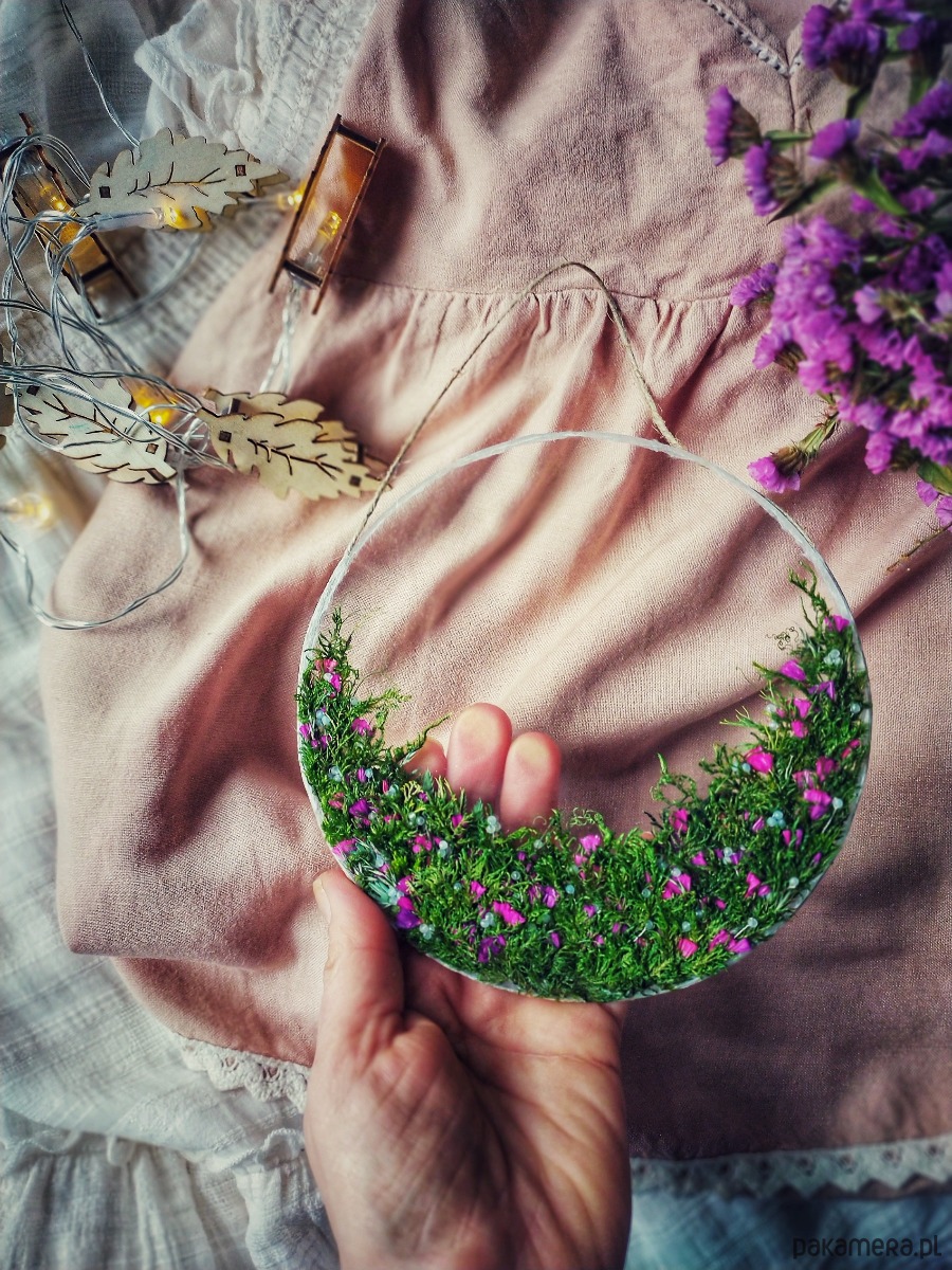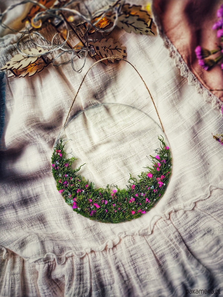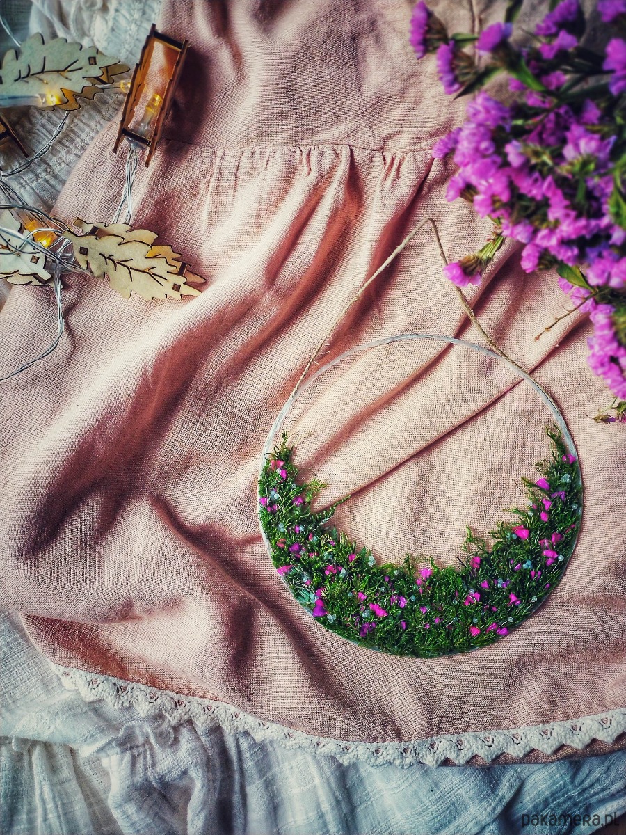 Obraz wykonany z różnych suszonych polskich kwiatów i mchów.