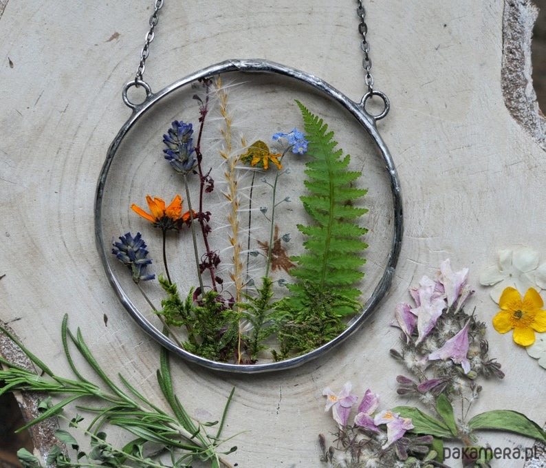 Prawdziwe suszone kwiaty, które możesz powiesić w swoim oknie lub na ścianie.