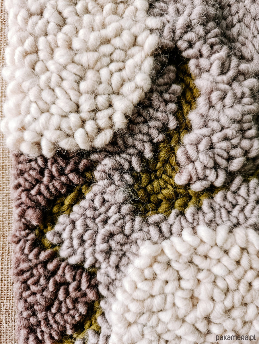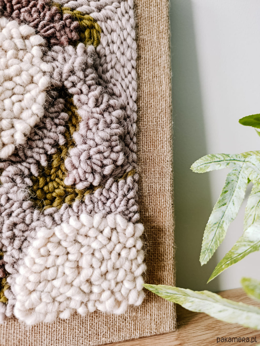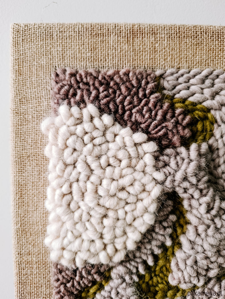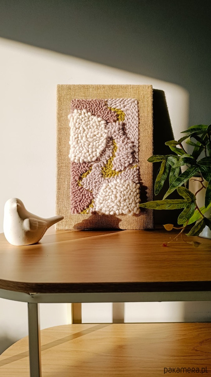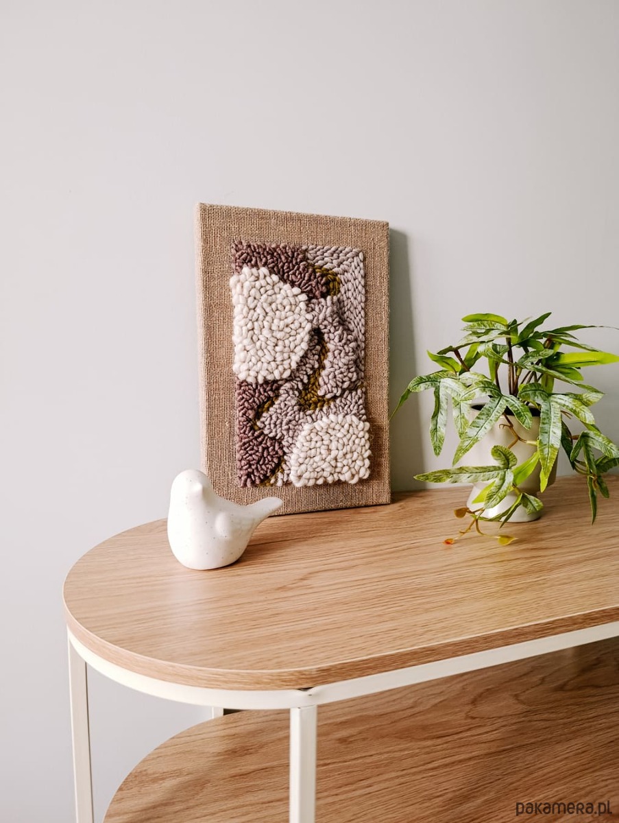 Obraz tekstylny "Miniatura z Podhala" to spokojny akcent do wnętrz, w których liczy się uważność i naturalność. Powstał w całości ręcznie, w technice punch needle, z wykorzystaniem naturalnej wełny, lnianej tkaniny i drewnianej ramki.