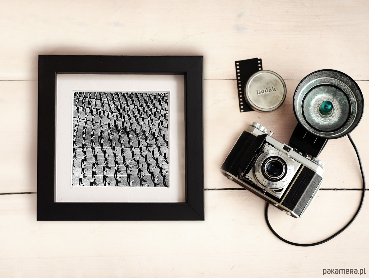 Reprodukcja oryginalnej fotografii jest wydrukowana na folii samoprzylepnej o gramaturze 140 gr/m2, oprawiona w czarną, drewnianą ramę za szkłem i eleganckim ręcznie docinanym passe-partout.