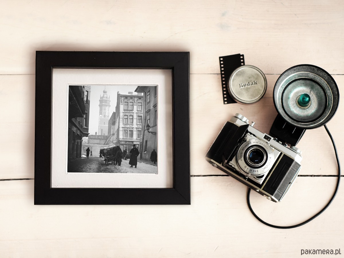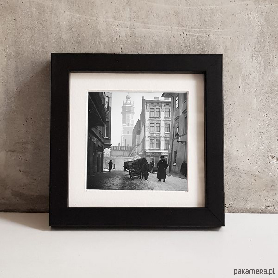 Reprodukcja oryginalnej fotografii jest wydrukowana na folii samoprzylepnej o gramaturze 140 gr/m2, oprawiona w czarną, drewnianą ramę za szkłem i eleganckim ręcznie docinanym passe-partout.