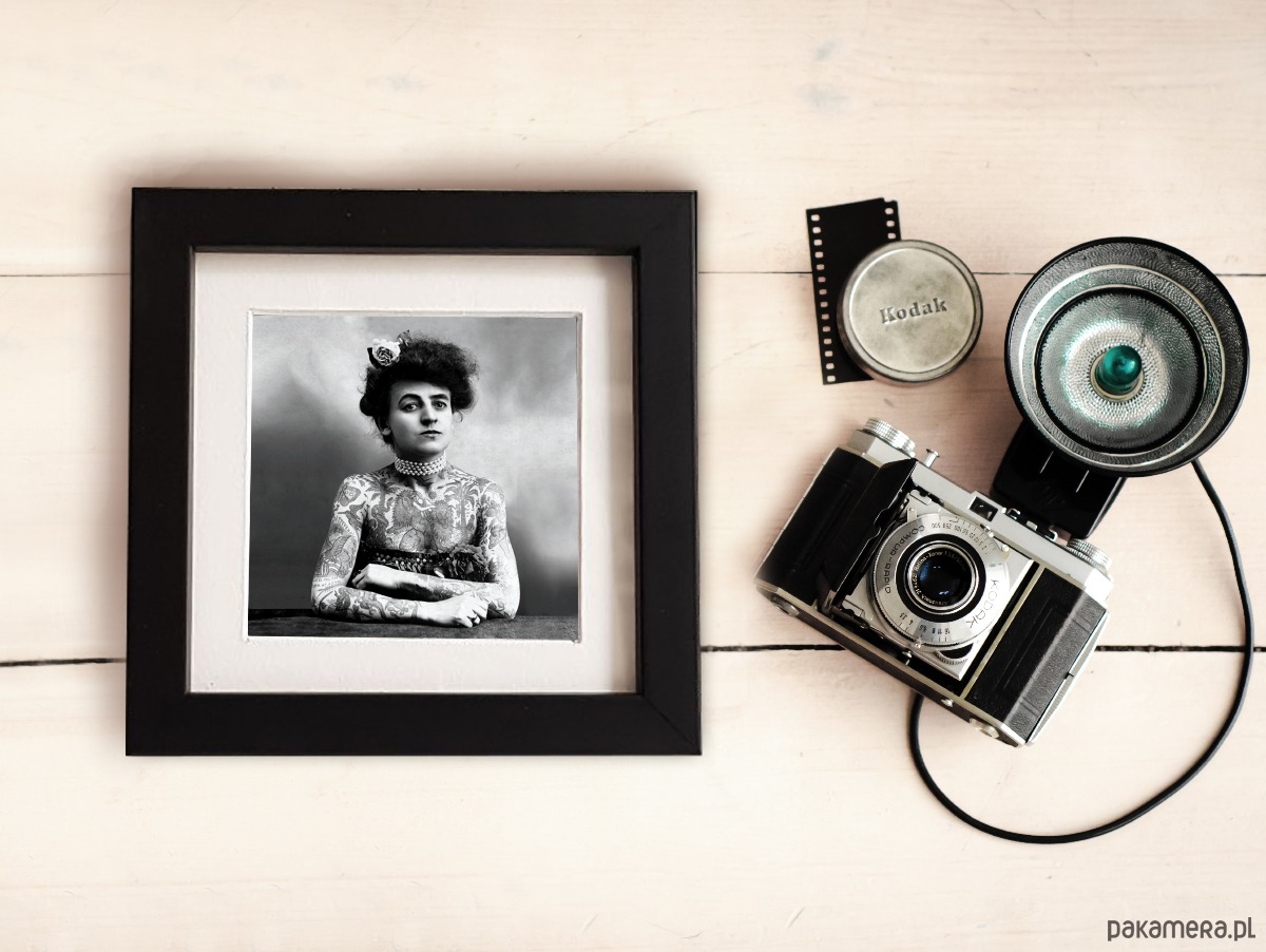 Reprodukcja oryginalnej fotografii jest wydrukowana na folii samoprzylepnej o gramaturze 140 gr/m2, oprawiona w czarną, drewnianą ramę za szkłem i eleganckim ręcznie docinanym passe-partout.