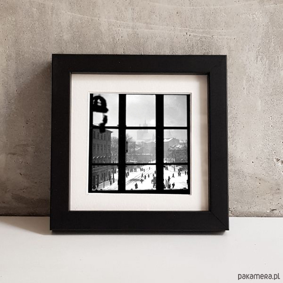 Reprodukcja oryginalnej fotografii jest wydrukowana na folii samoprzylepnej o gramaturze 140 gr/m2, oprawiona w czarną, drewnianą ramę za szkłem i eleganckim ręcznie docinanym passe-partout.