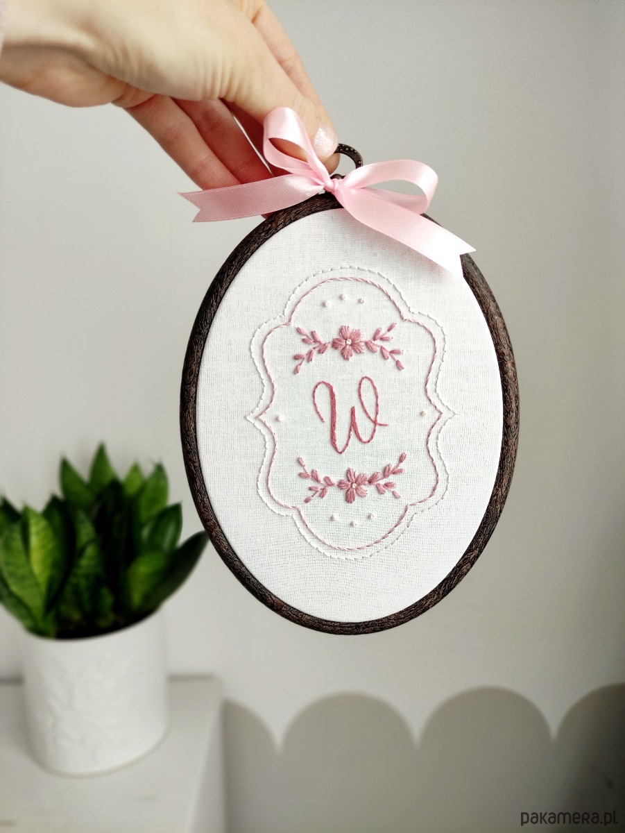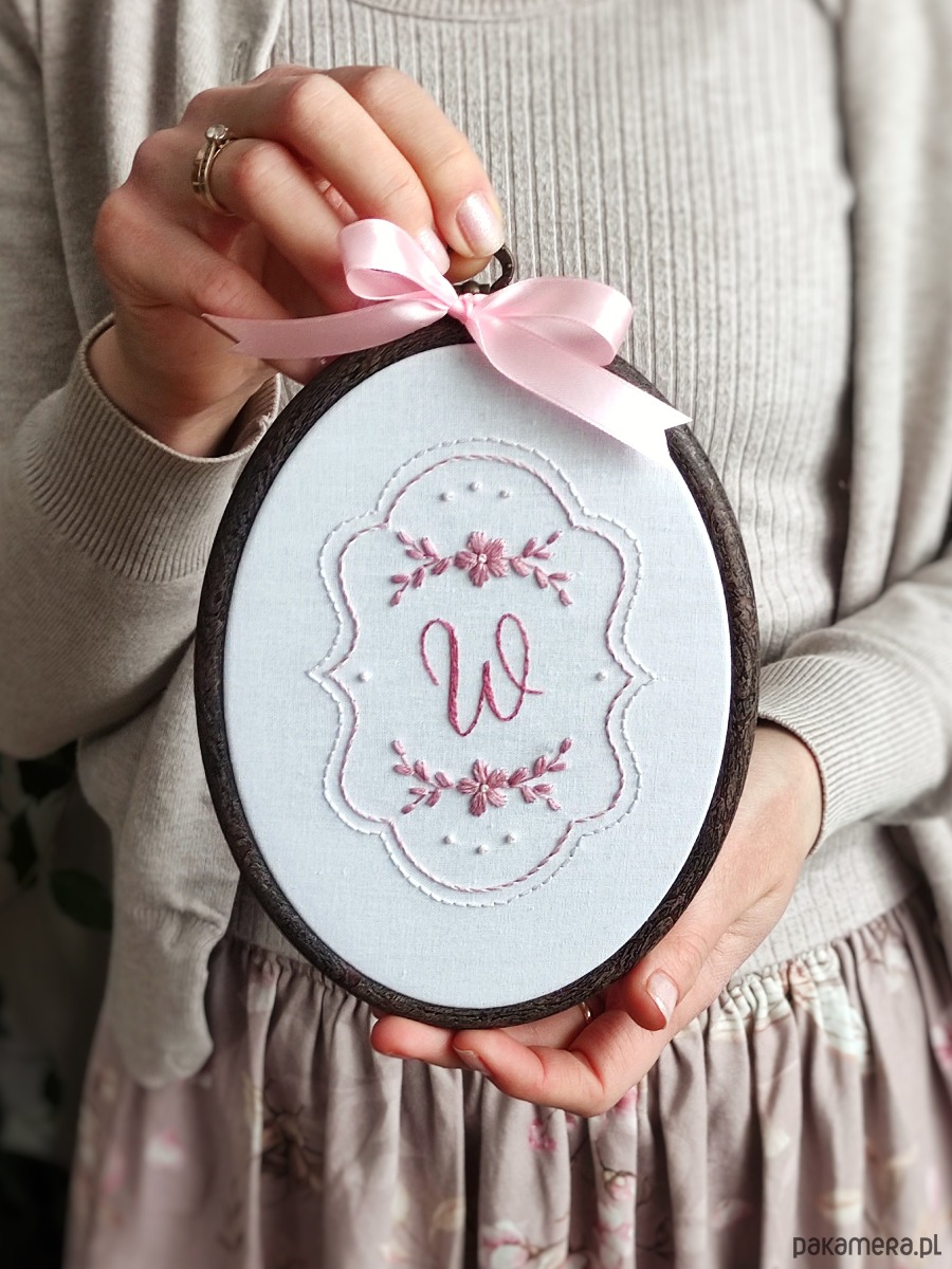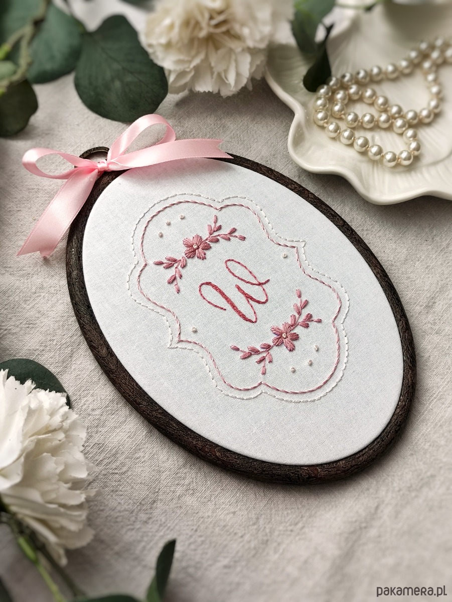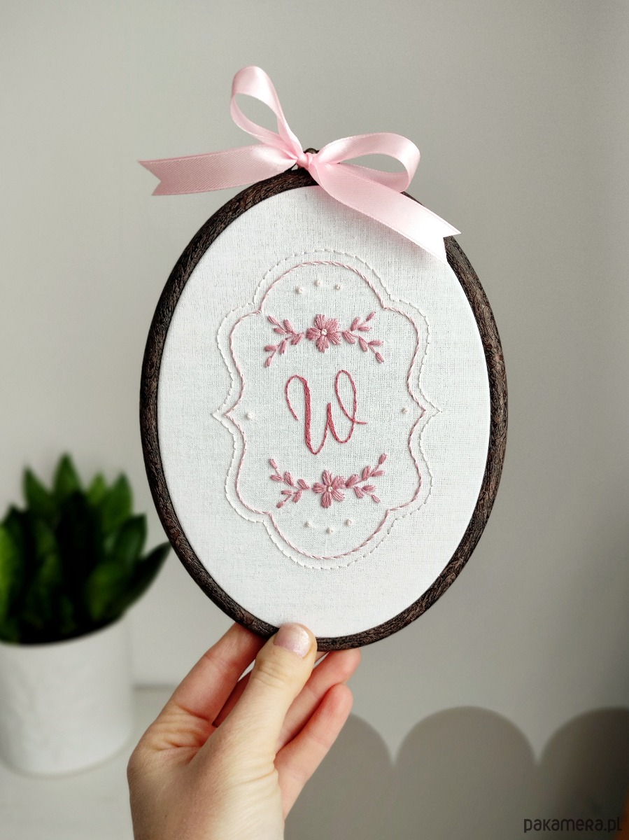 Piękny owalny tamborek z Twoim inicjałem!