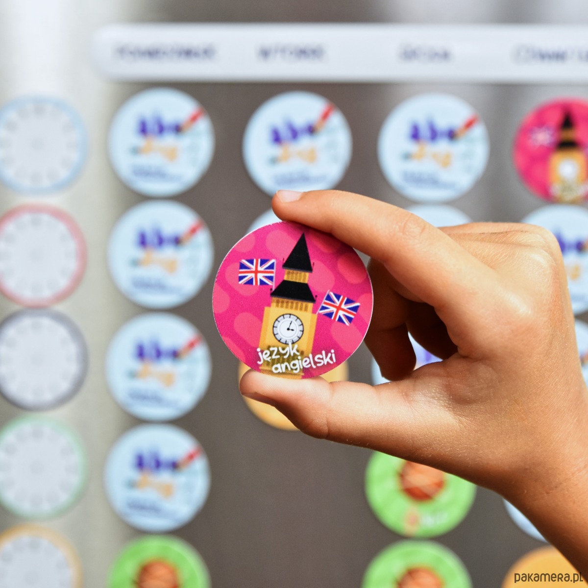 W zestawie 2 puste magnesy na brakujące przemioty lub wydarzenia