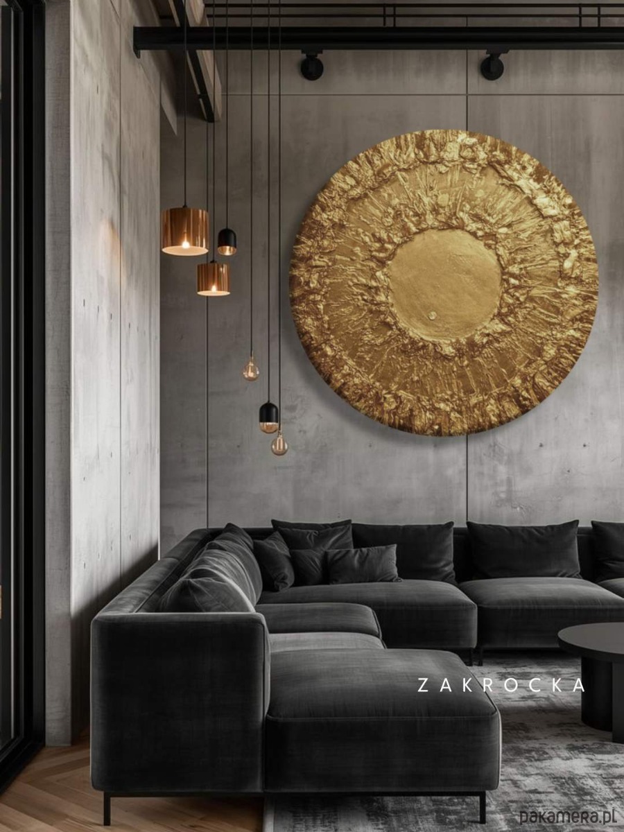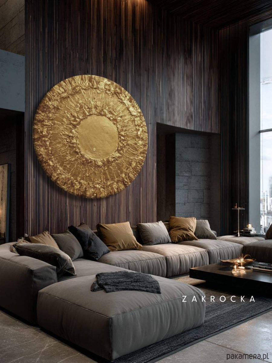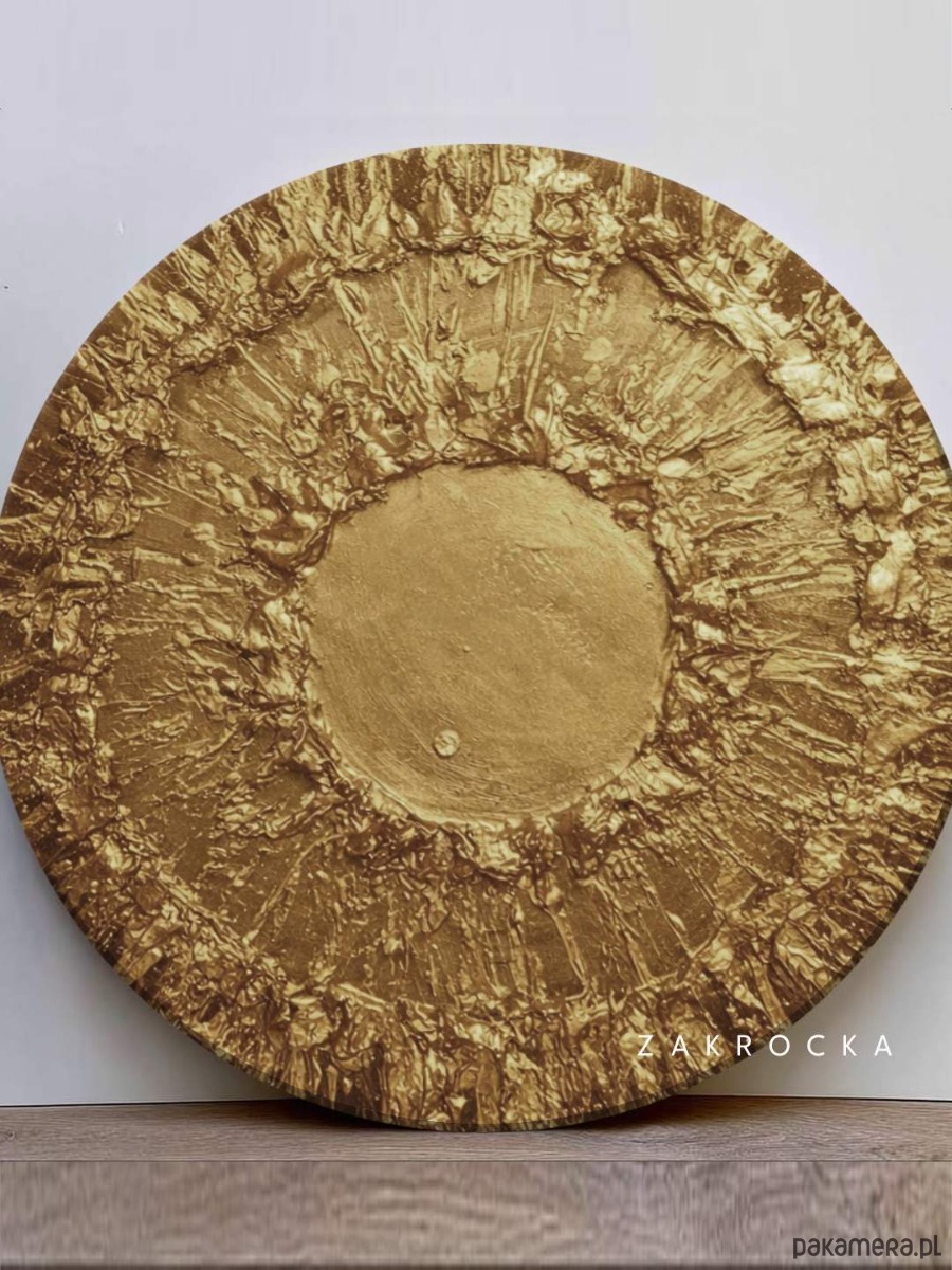 Ten obraz strukturalny w okrągłej formie przyciąga uwagę jak centralny punkt wnętrza. Promienista struktura rozchodząca się od środka tworzy efekt głębi i ruchu, a ciepłe odcienie beżu i brązu subtelnie odbijają światło. To obraz na płótnie, który idealnie sprawdzi się jako dominanta nad sofą, łóżkiem lub w reprezentacyjnym holu. Jego forma łagodzi przestrzeń i nadaje jej elegancki, spójny charakter.