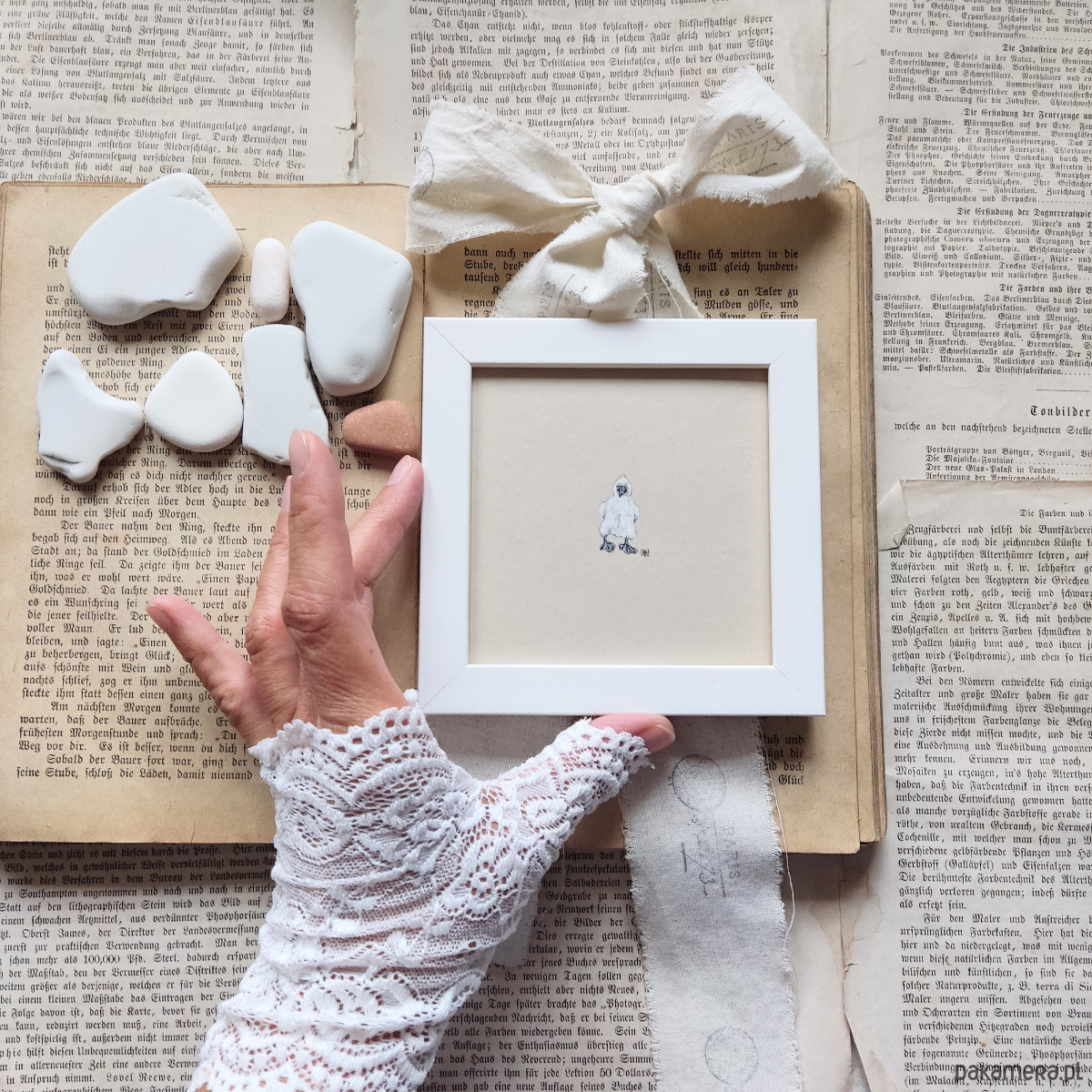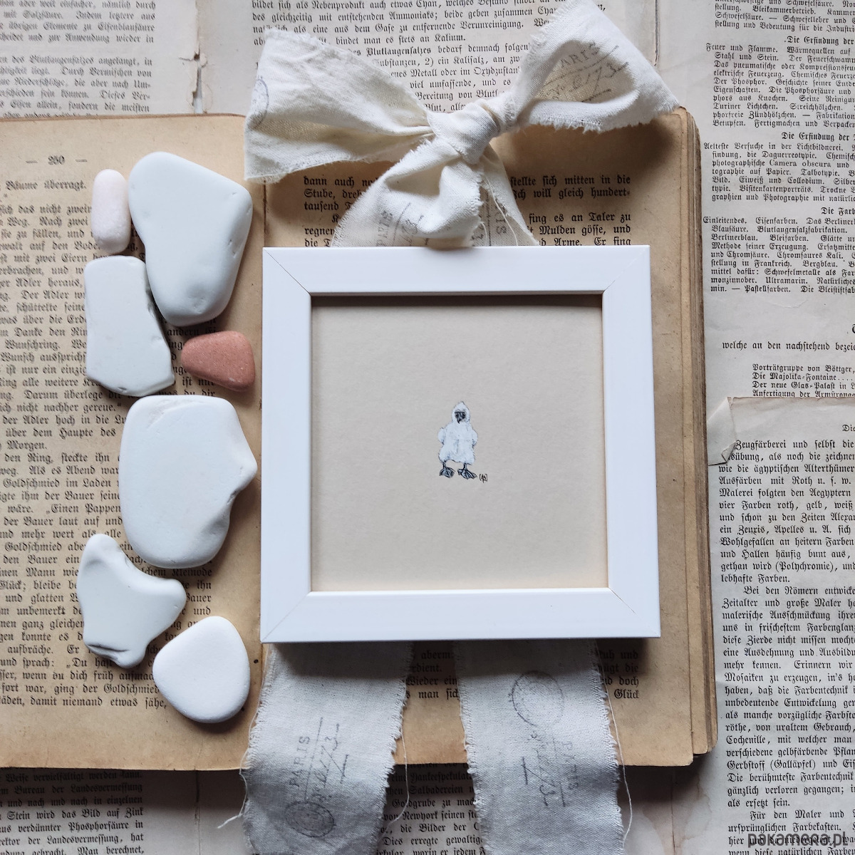 Szczegóły najlepiej widać przez szkło powiększające ;-) Pięknie prezentuje się cała kolekcja miniaturek na ścianie zebranych tematycznie - książki, kwiaty, ulubione miejsca, ptaki ...