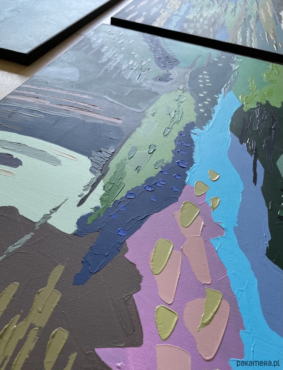 Autorskie obrazy malowane w technice strukturalnej farbami akrylowymi. Bardzo grube, wyraziste struktury farby, grube pociągnięcia pędzlem oraz szpachtułką malarską dają dodatkowy efekt.