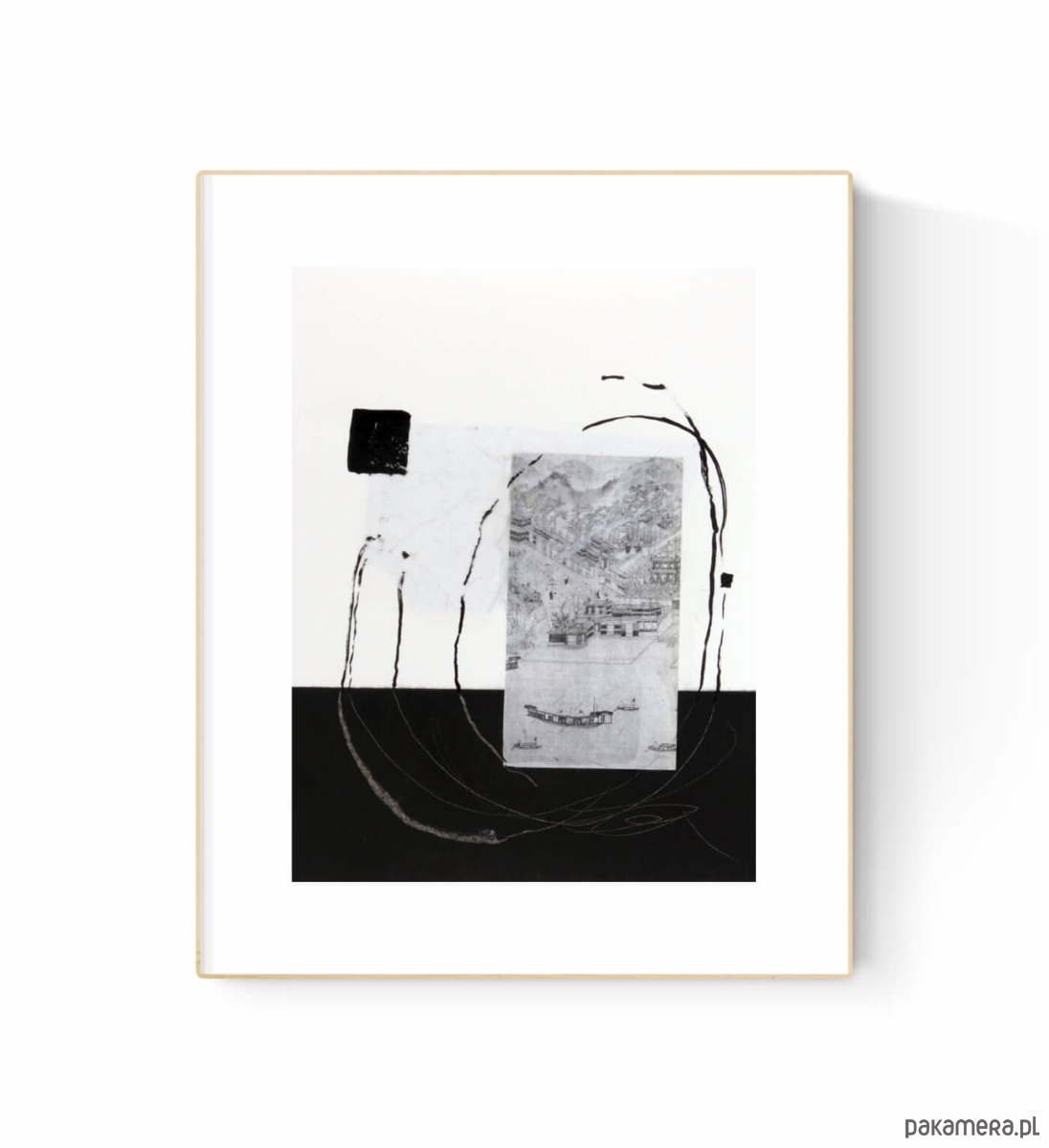 Obraz oprawiony jest w białe passe-partout, gotowy do włożenia w ramę 40x50 cm.