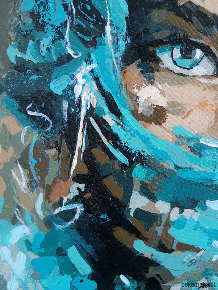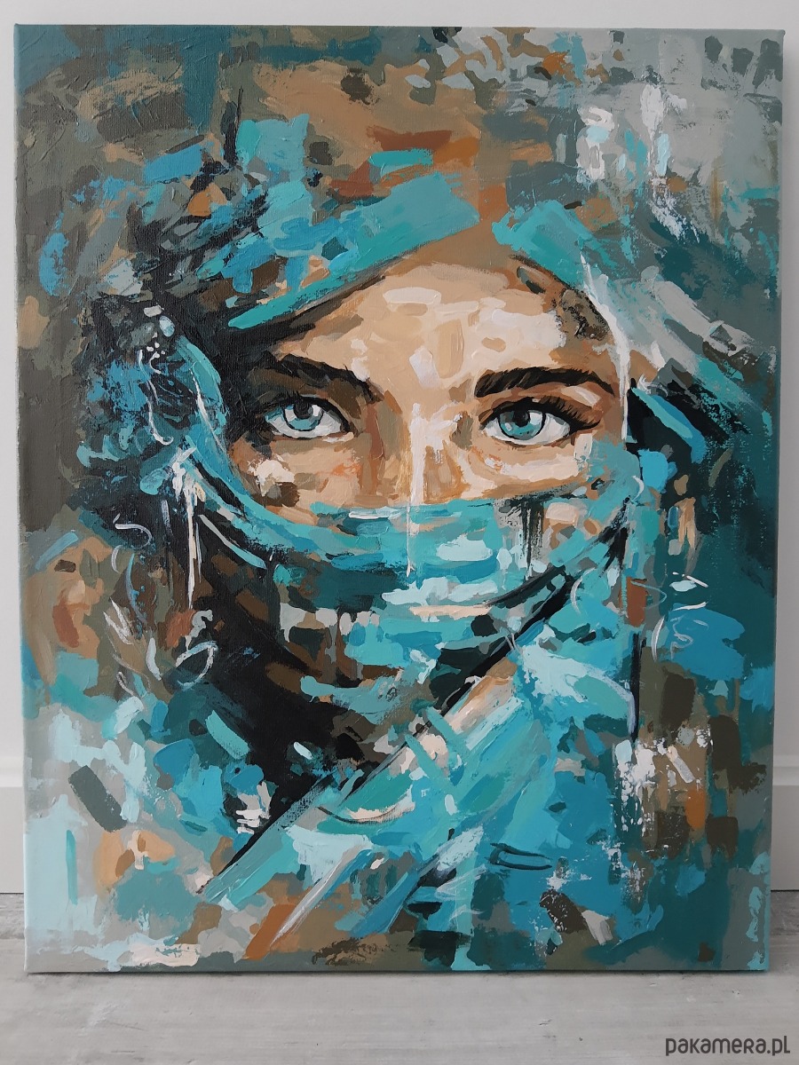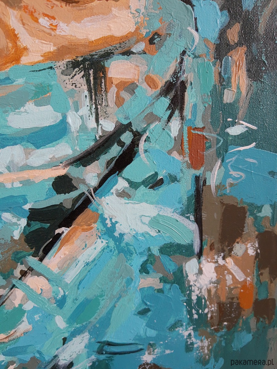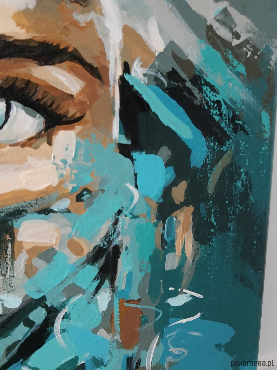 Widoczna faktura farby na obrazie - pokazane na zbliżeniach