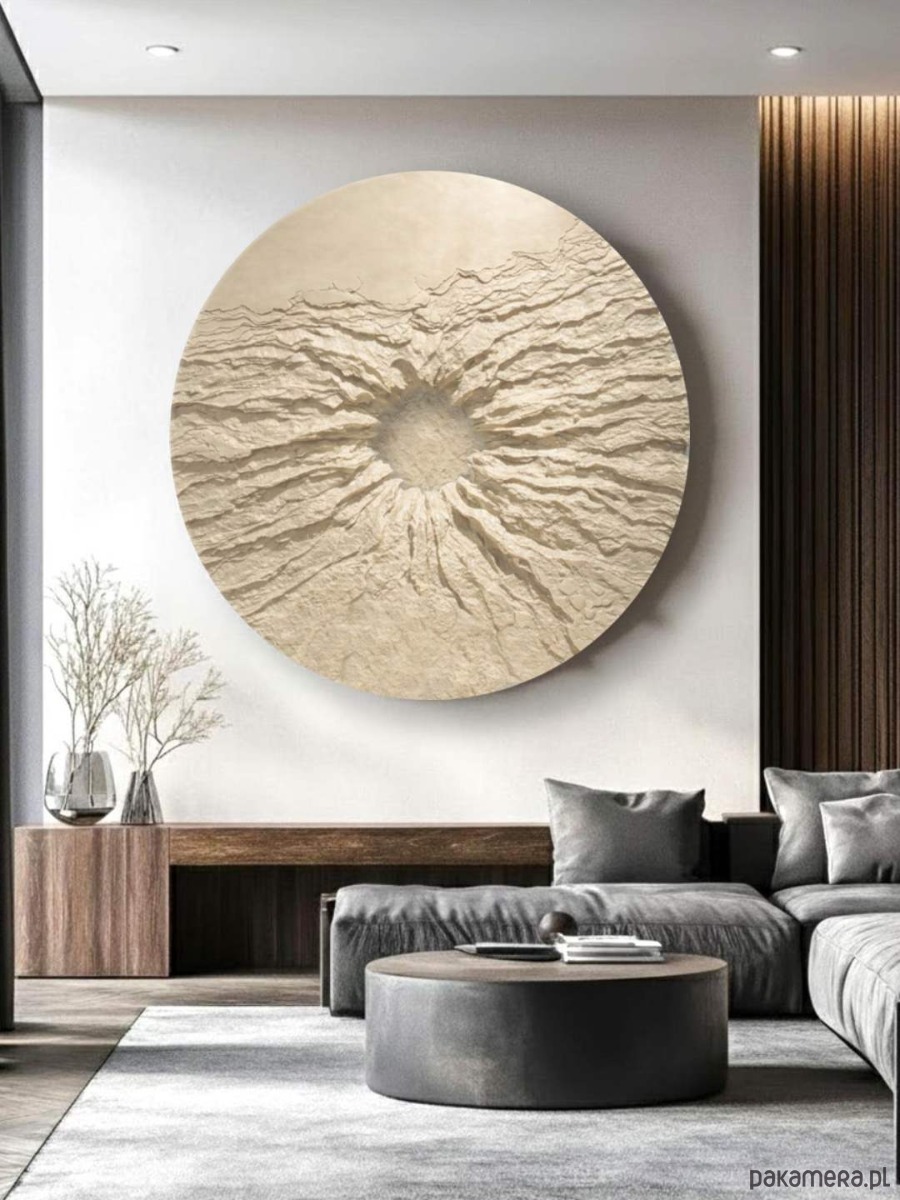 Obrazy okrągłe do salonu - kość słoniowa / Mocna i gruba struktura