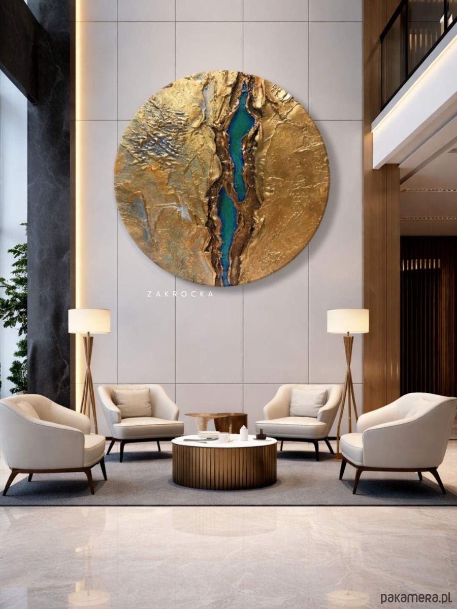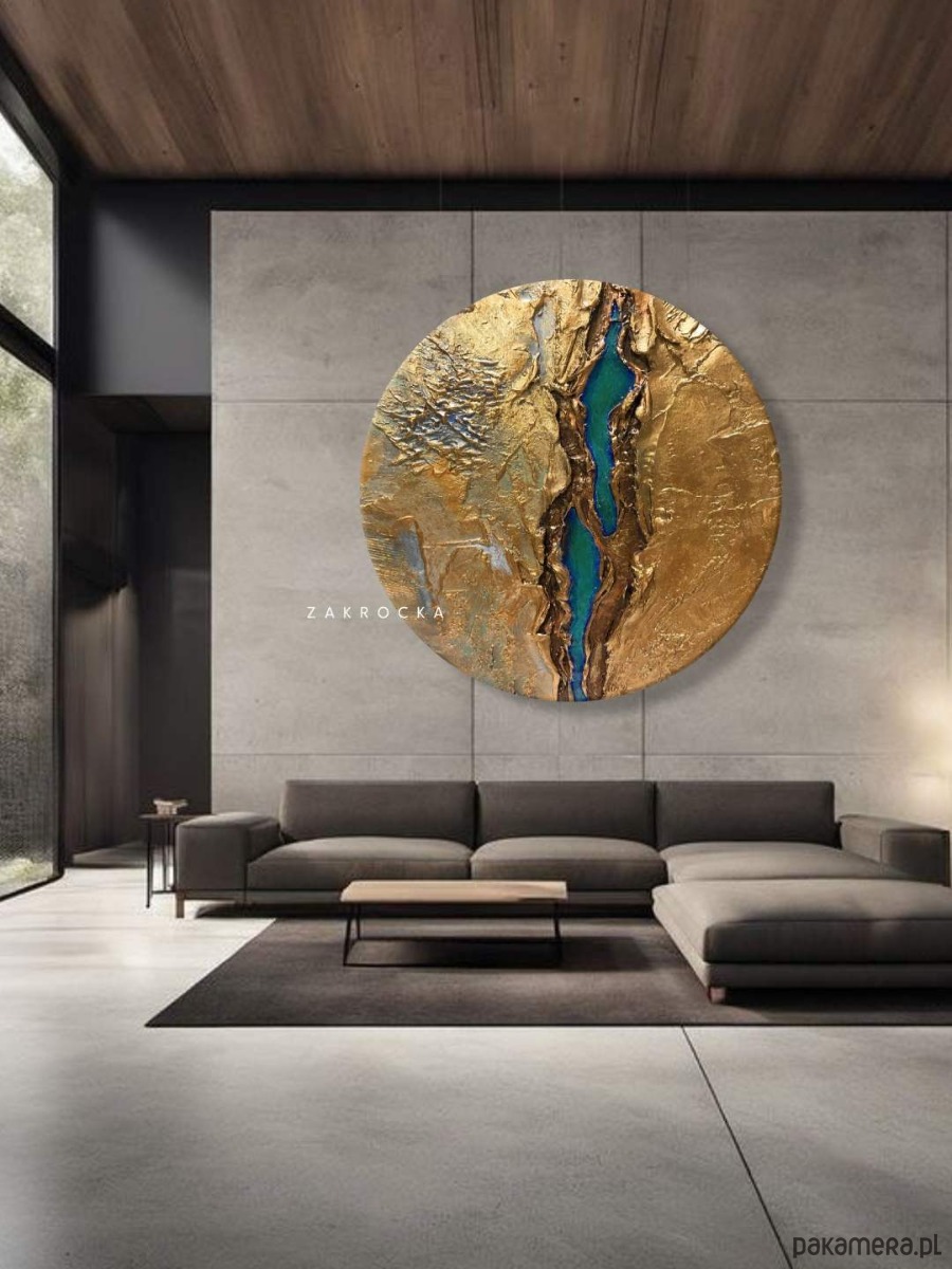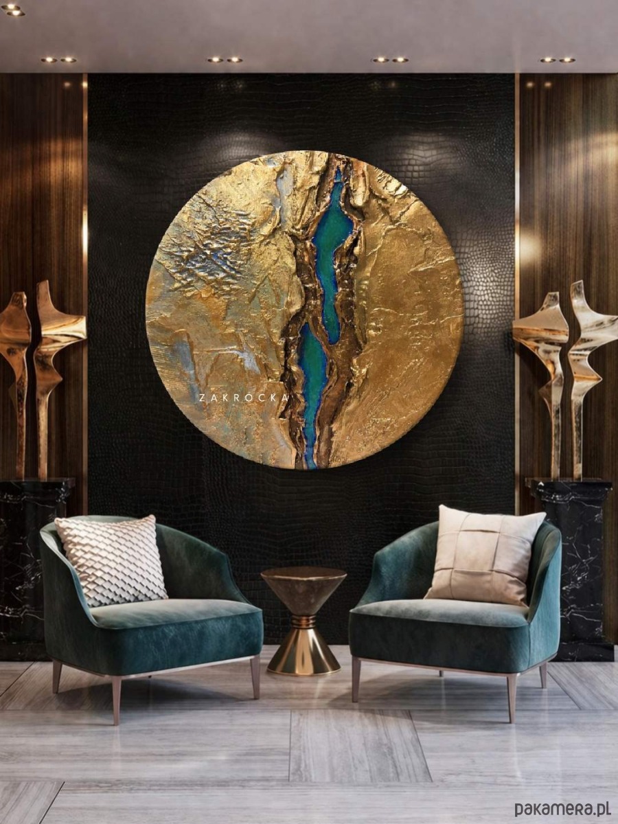 Obrazy okrągłe do salonu - złoto i szmaragd
