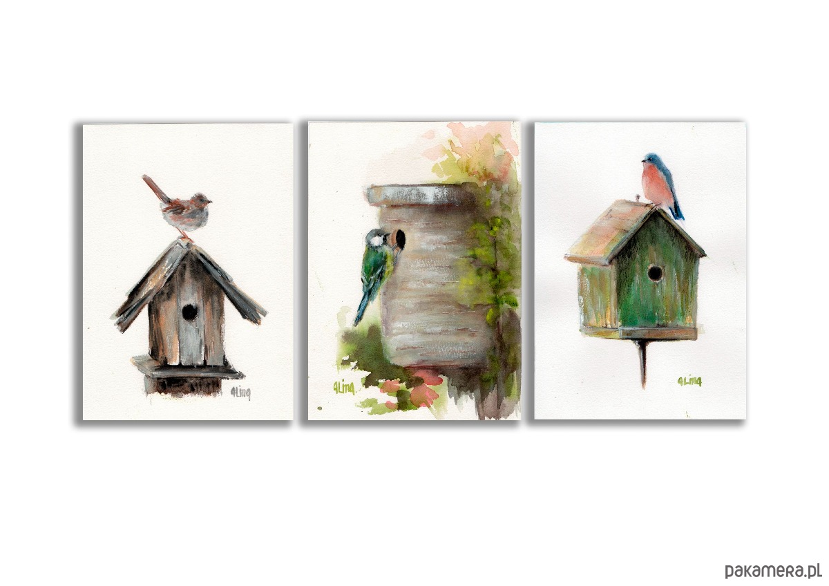 Obrazy ręcznie malowane "Ptaki" . Zestaw 3 szt