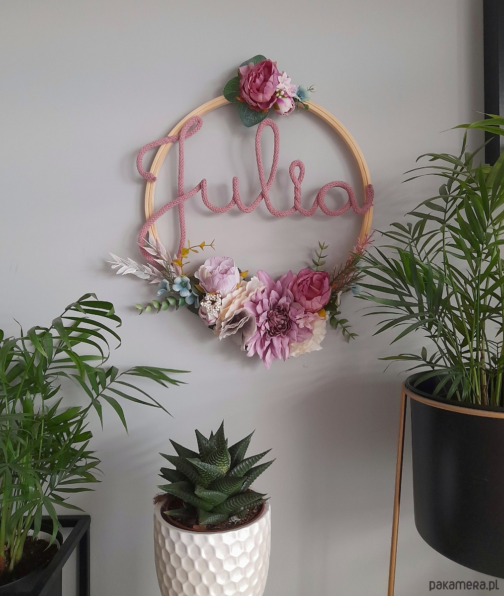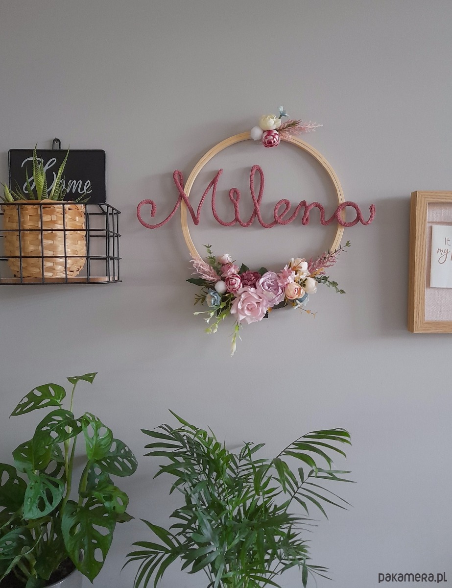 Po dokonaniu zakupu w polu uwagi proszę wpisać jakie imię umieszczamy na tamborku i jakie mniej więcej kolory kwiatków mają być na tamborku.